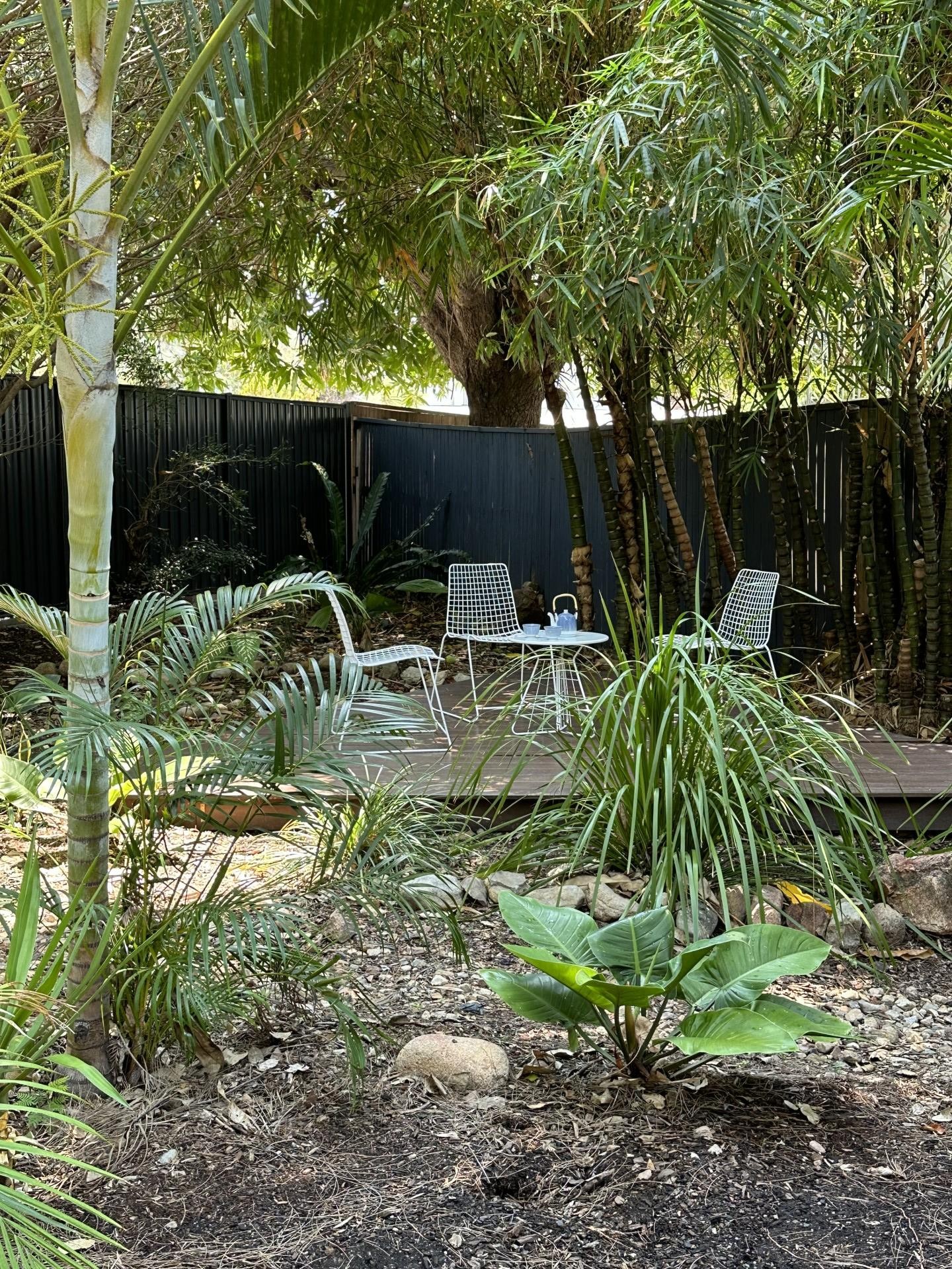 Landscaped paths lead to the outdoor timber decks which are shaded by leafy trees and is the perfect place to enjoy a morning coffee or an evening aperitif