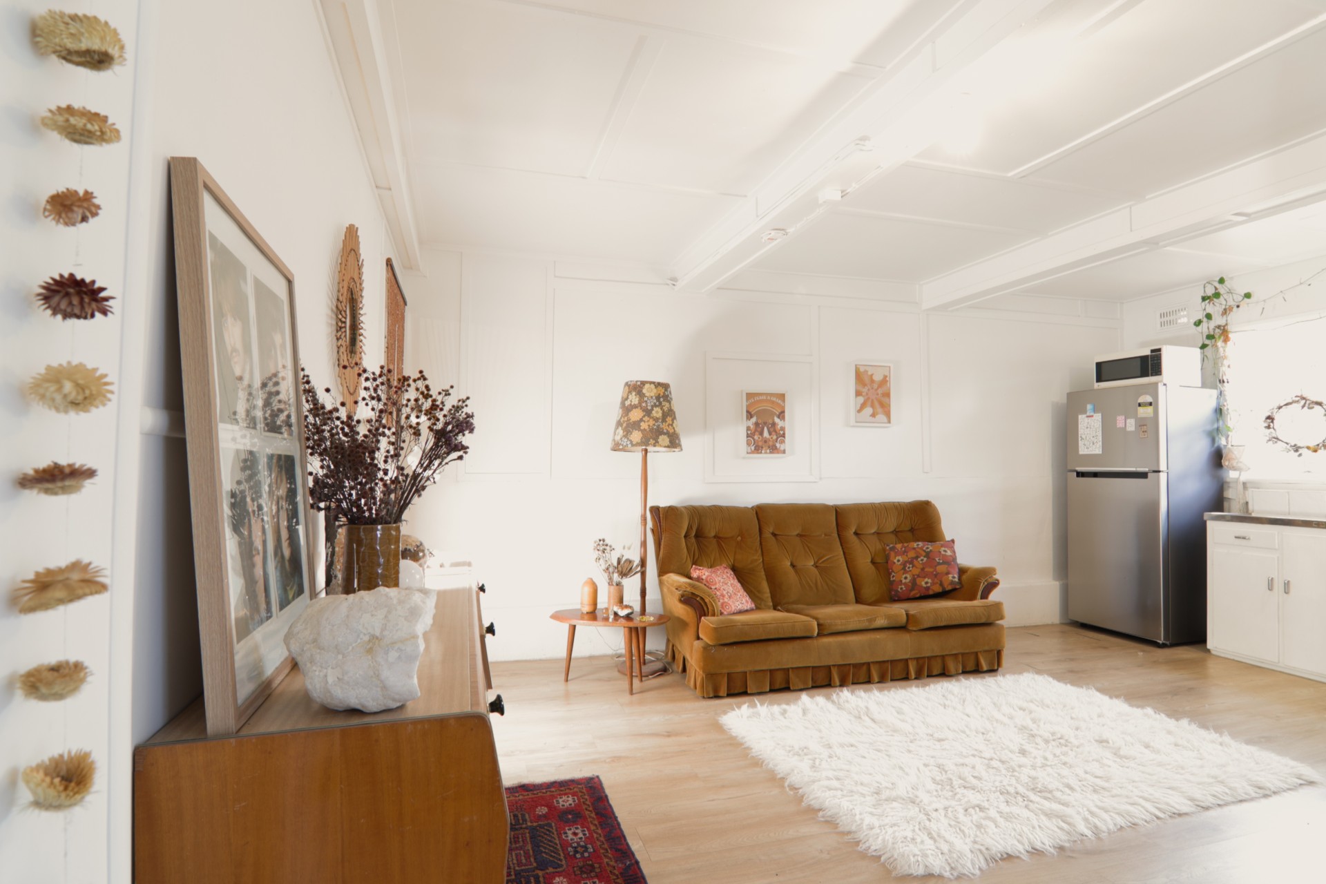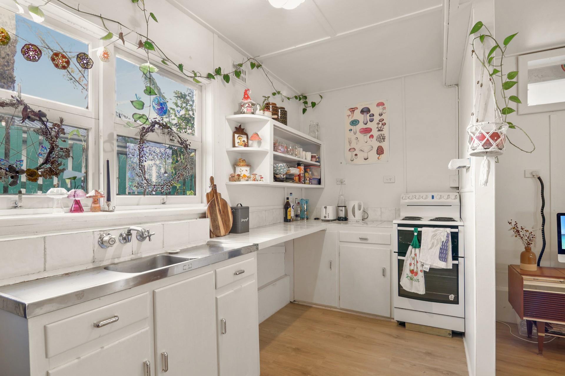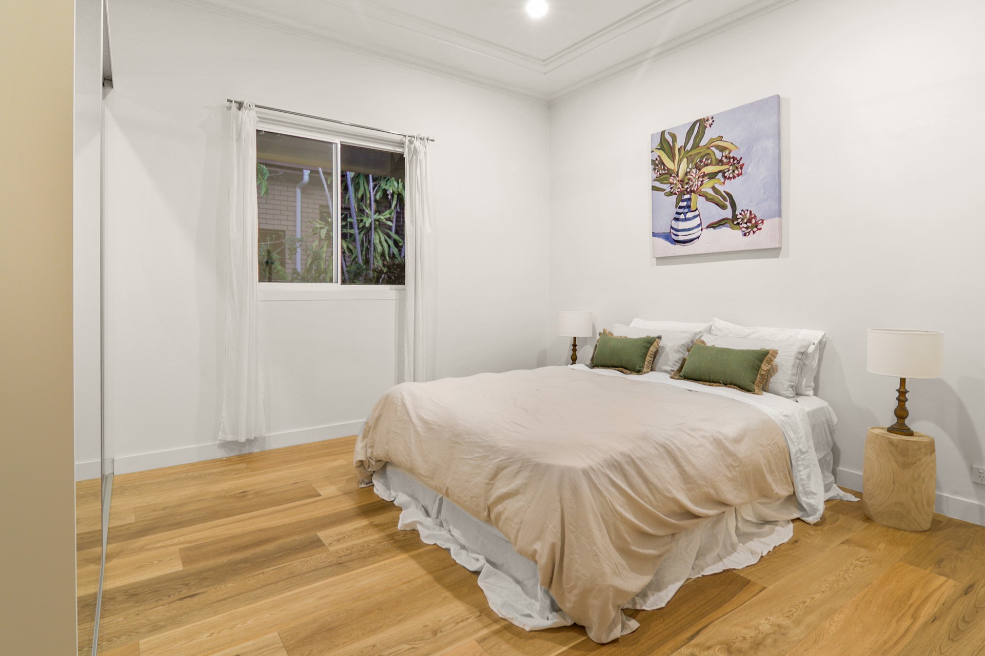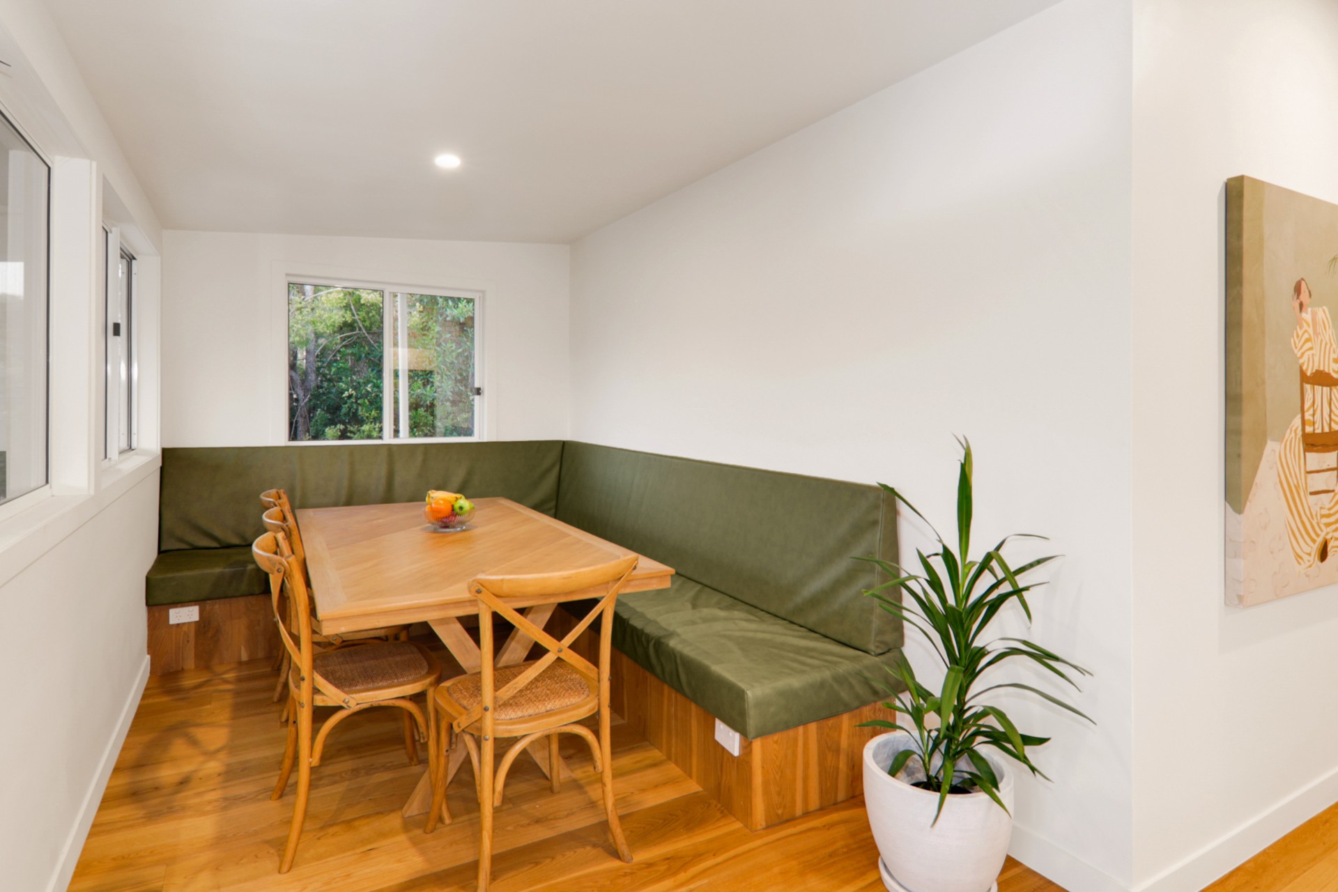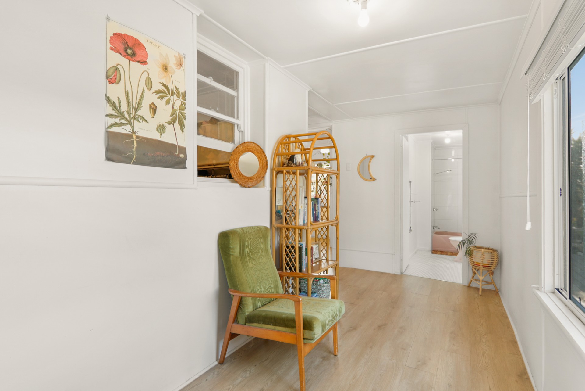- Open-plan living flooded with natural light, and two large timber feature fans