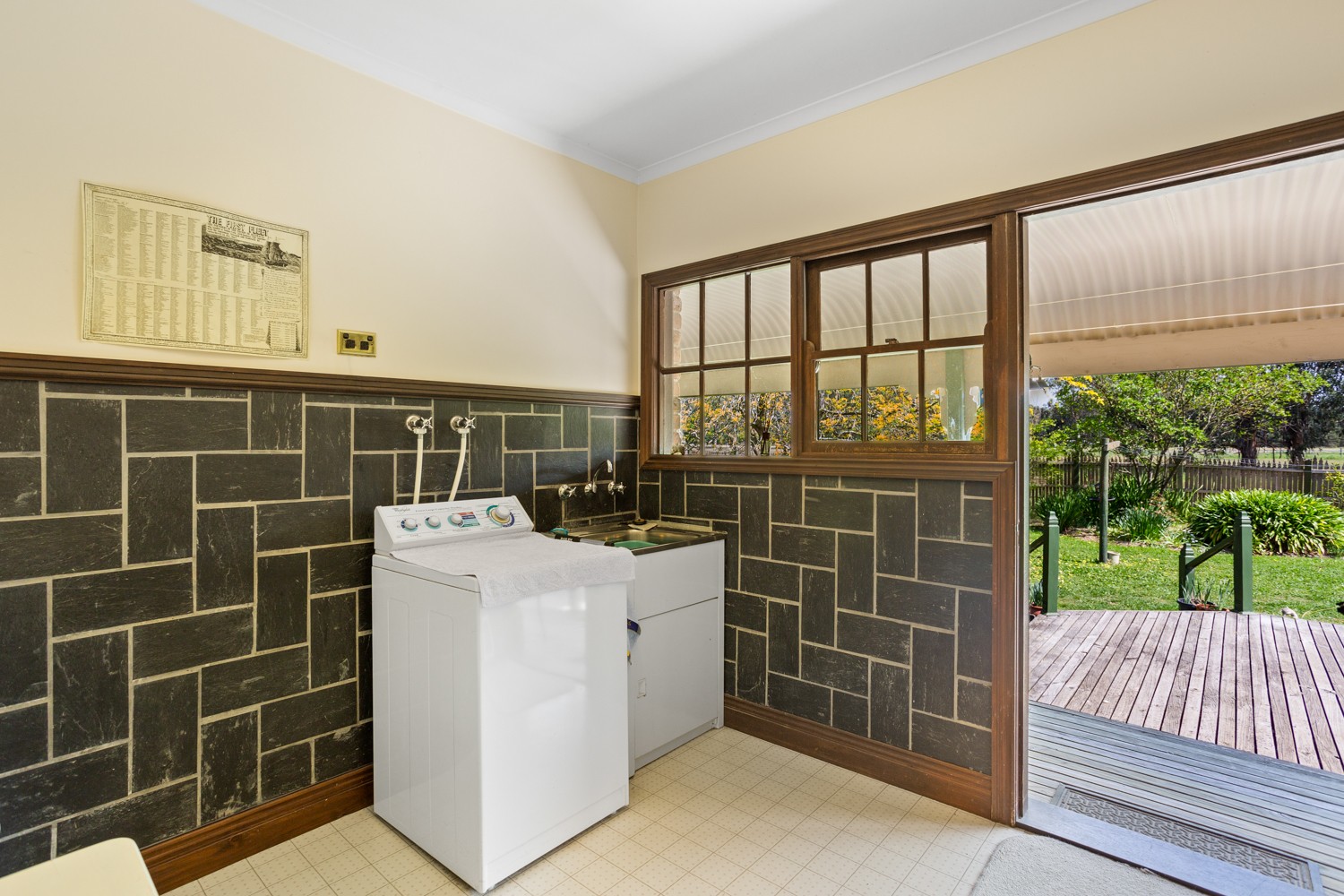 The large laundry also serves as a mud room to kick off the gumboots at the door and hang up your coat and brolly. It leads out to the rear veranda and decking and has ample space for the wood box, the boot scraper and a garden swing or seat.