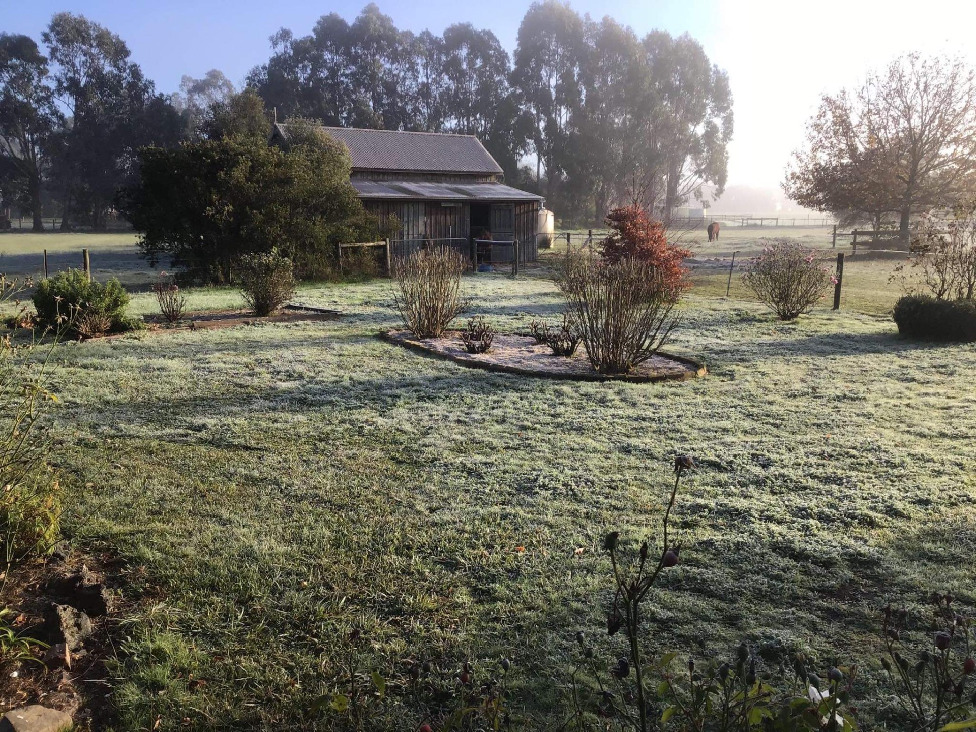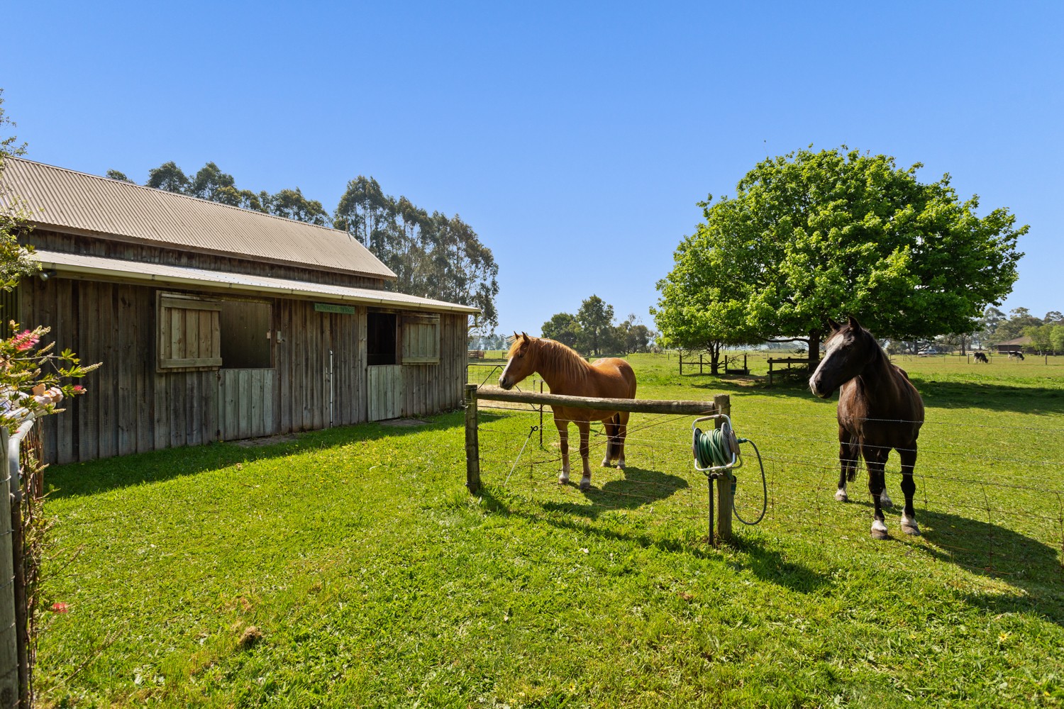The house and gardens are separated from the North, West and eastern-facing paddocks that are well-fenced for the horses or livestock.
