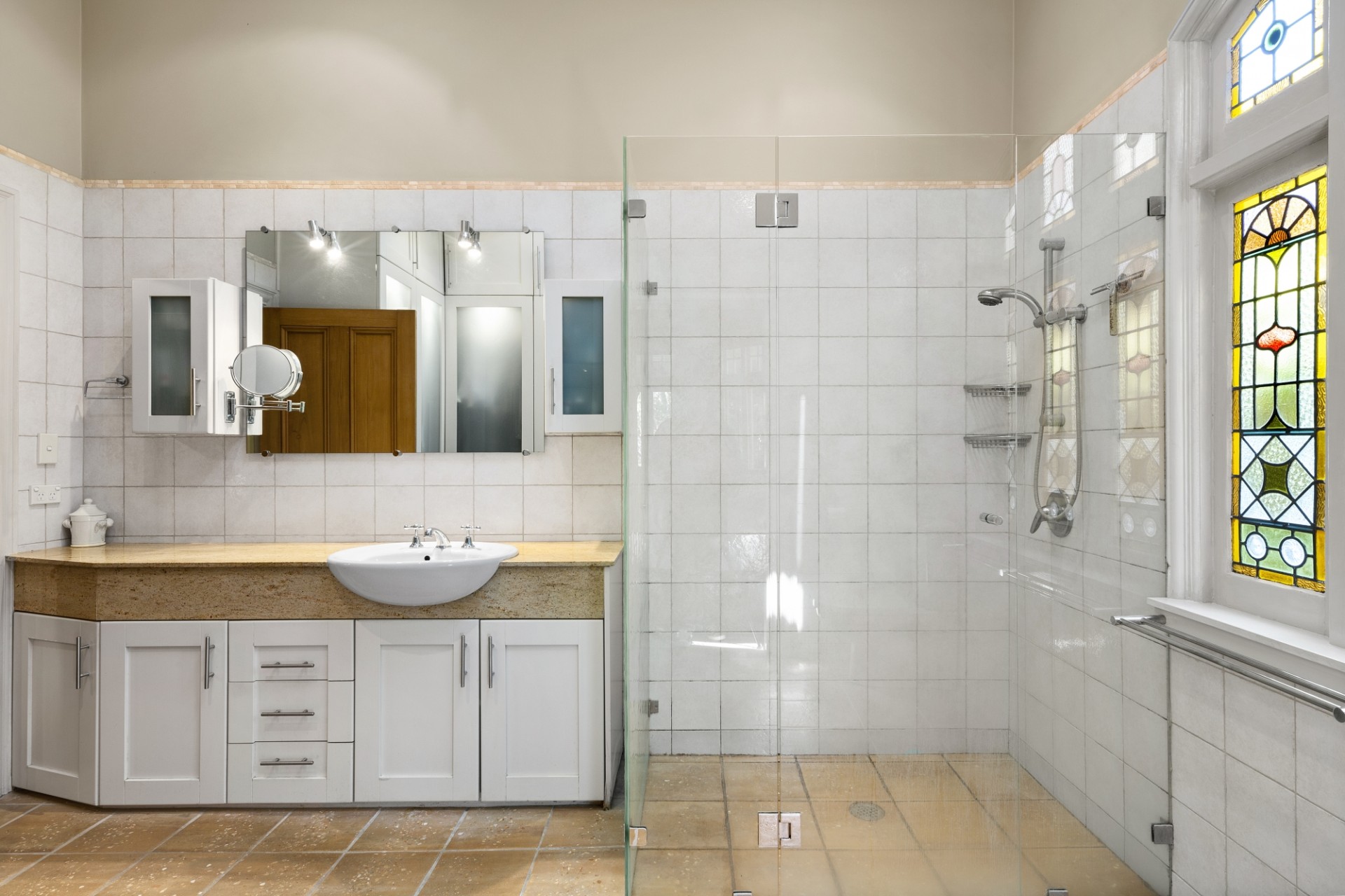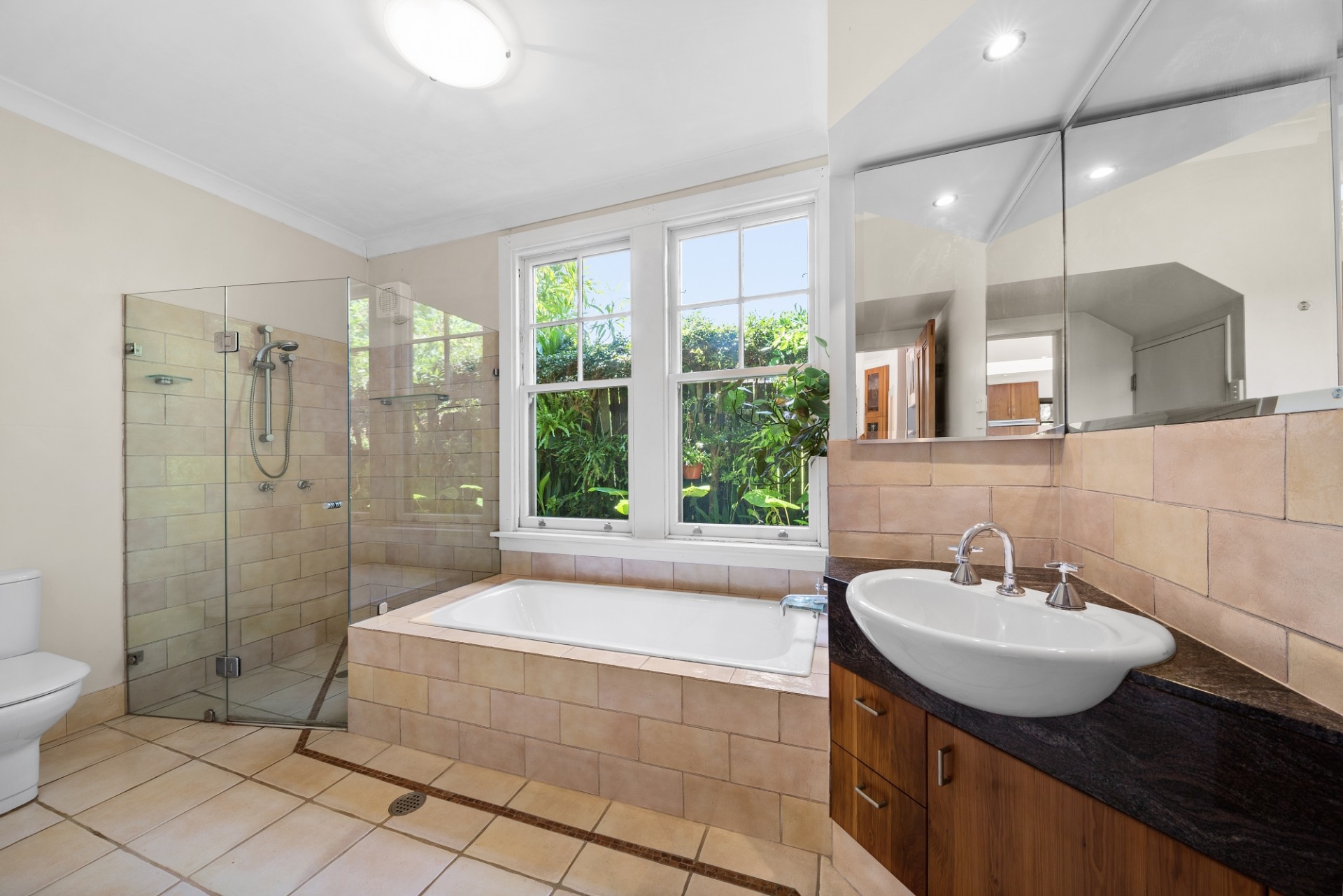 -3 generous bathrooms, 2 downstairs, 1 upstairs featuring continuous hot water, frameless shower screens and marble countertops. Heated floor, large skylight and built-in wardrobes in the ensuite.
