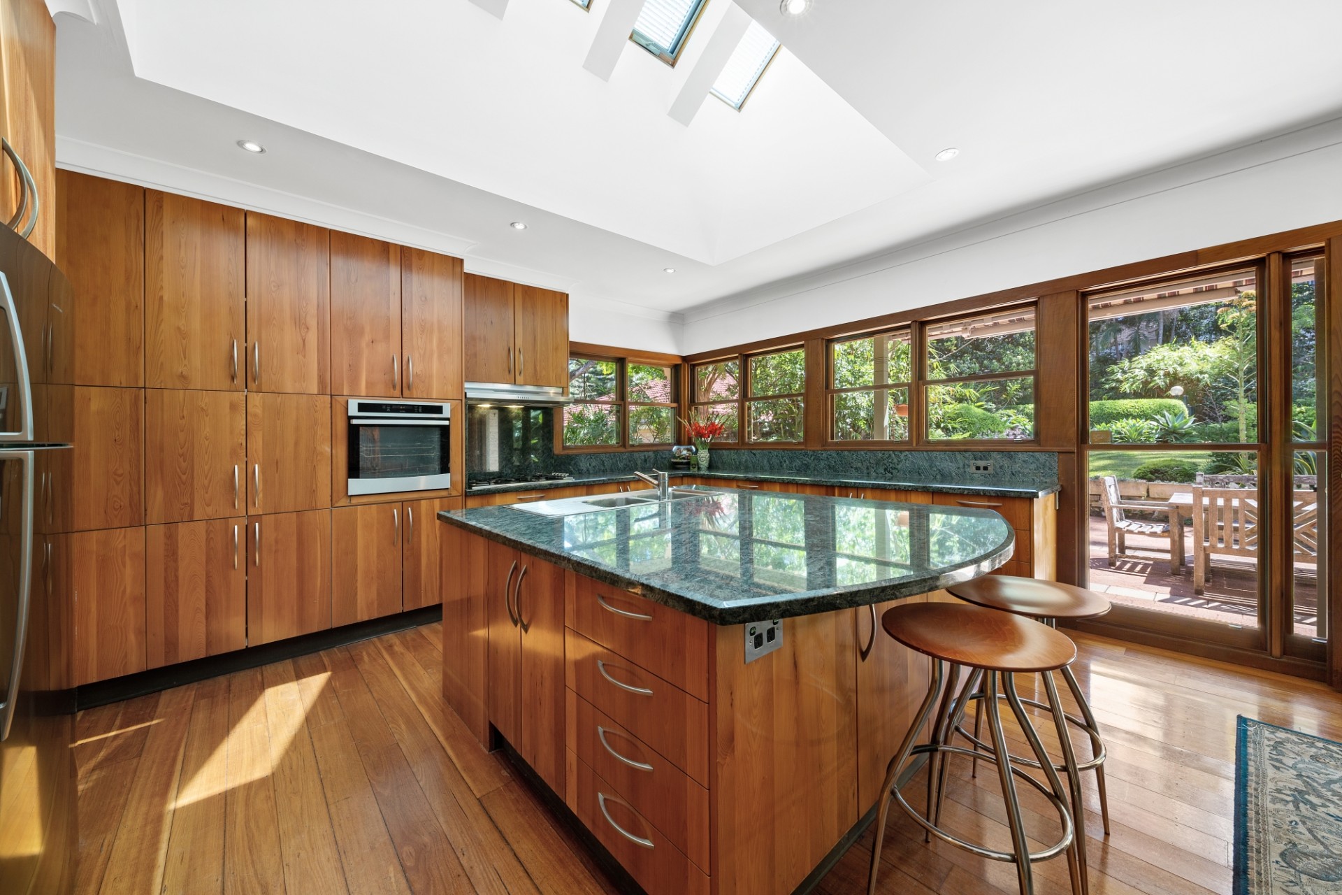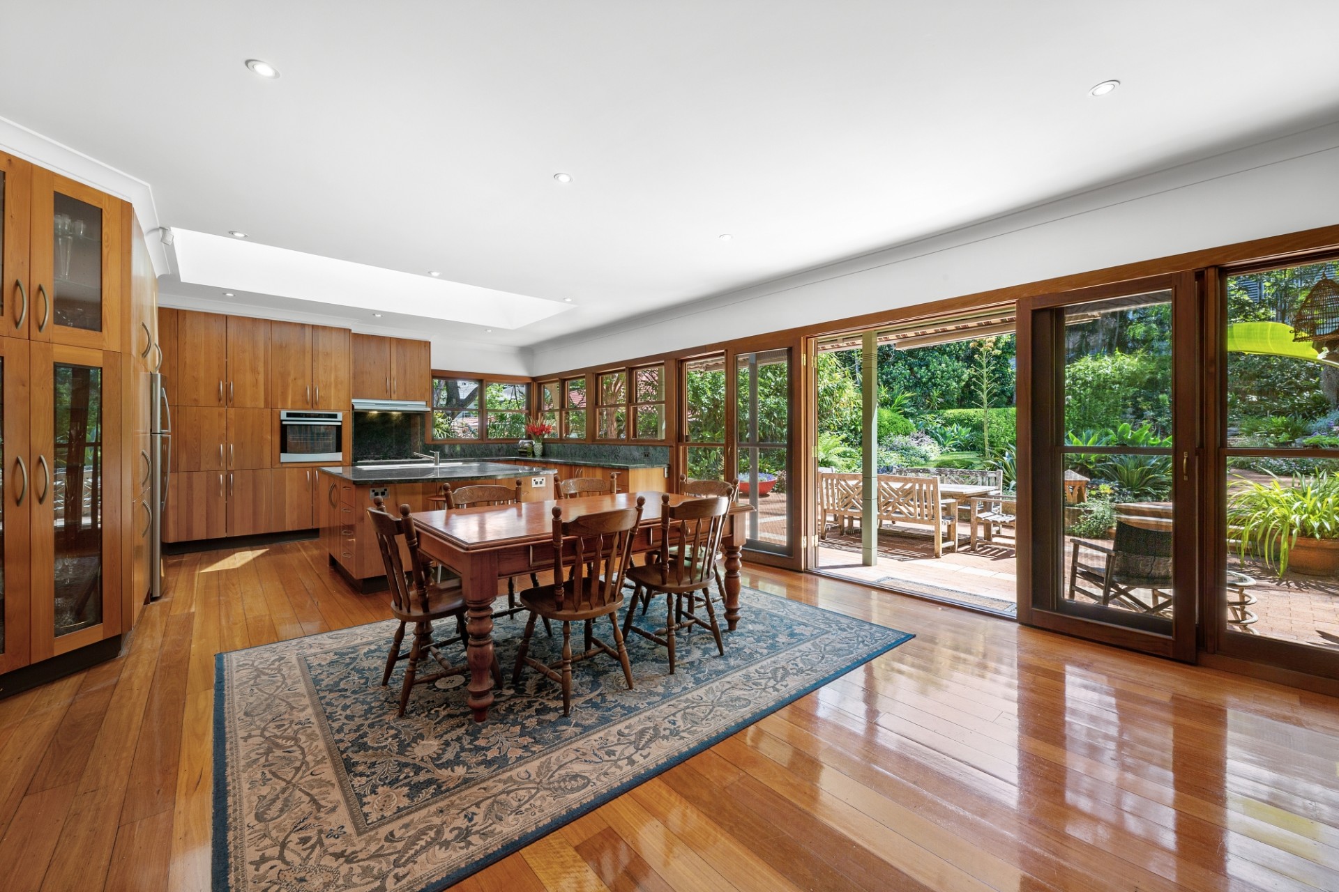 -Large Marble kitchen with gas, generous pantry, abundant natural light flowing in through 5 skylights to the adjoining casual dining area.