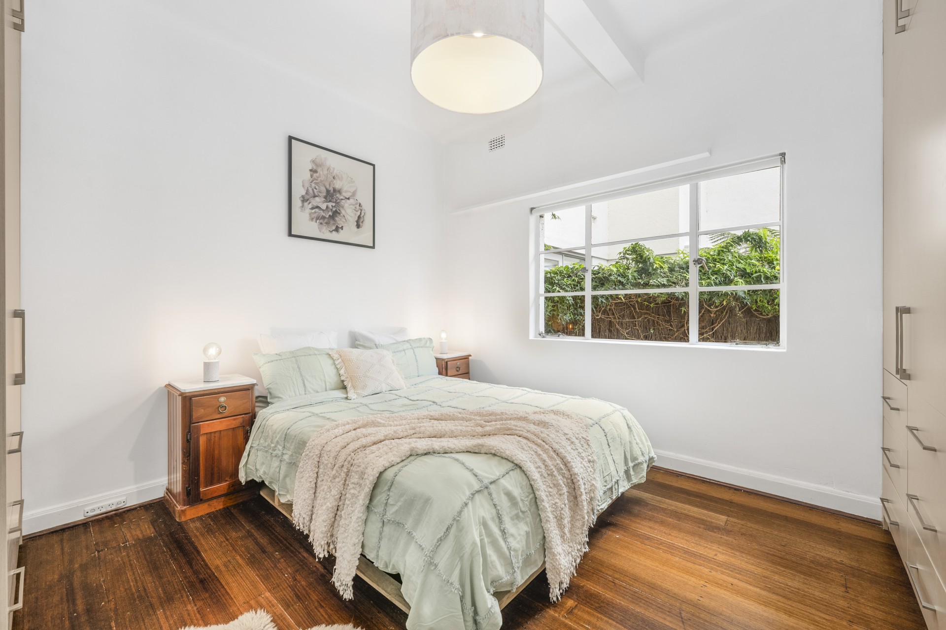 As you step through the door, you'll be greeted by an expansive open-plan living and dining area adorned with original, gleaming floorboards. The well-designed kitchen features top-of-the-line stainless-steel appliances, a convenient dishwasher, and ample storage space, making every meal a culinary delight.