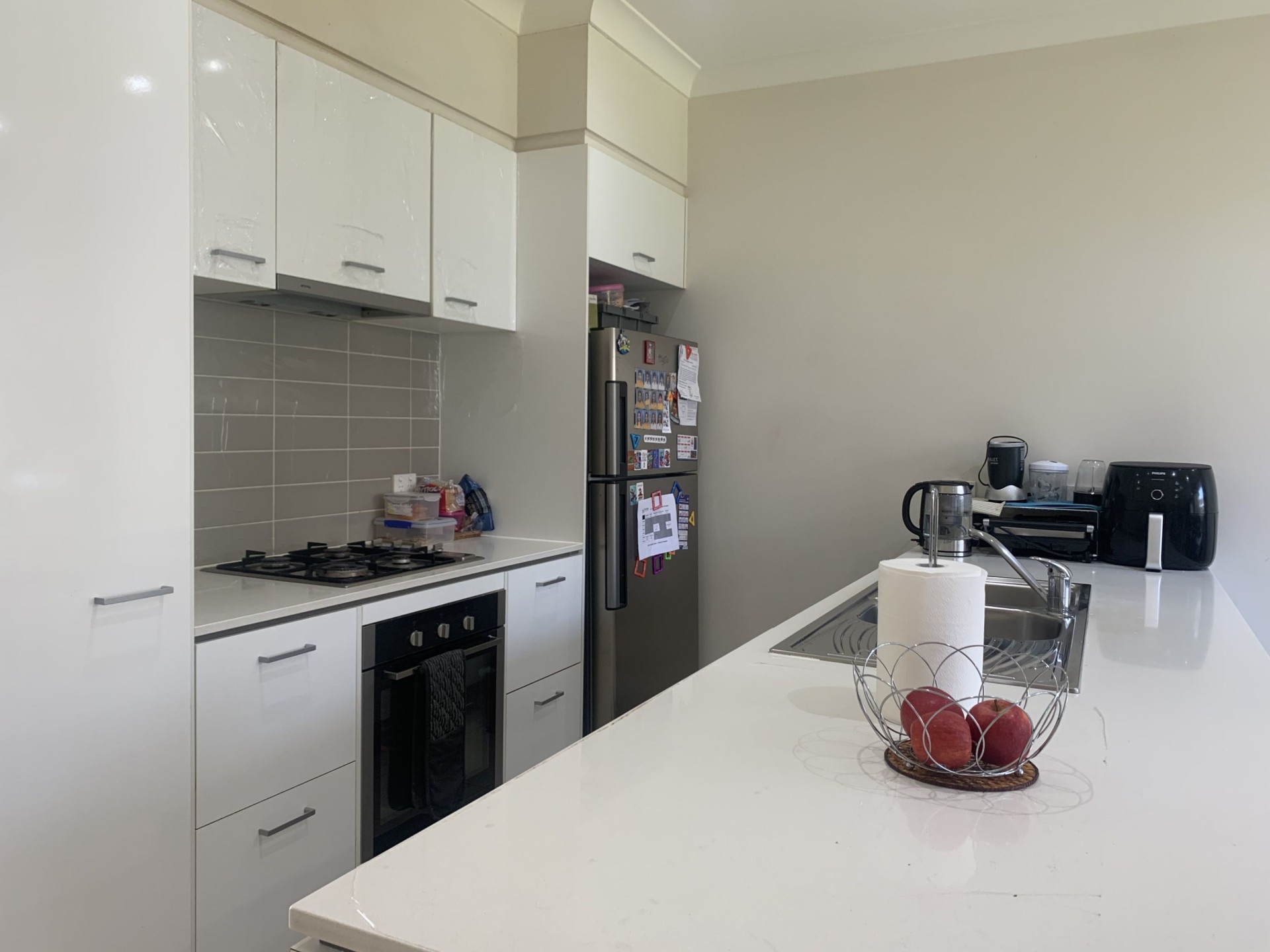 - Kitchen with stone benchtop