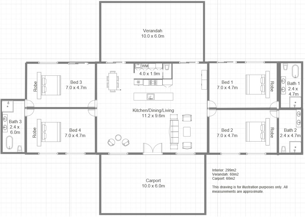 The home has four significant bedrooms, each with individual access to the three luxury bathrooms (one bathroom has jack/jill access). The bedrooms are 33square meters in size, each with full height hidden robes and the two rear bedrooms has their own sliding door to access outside.