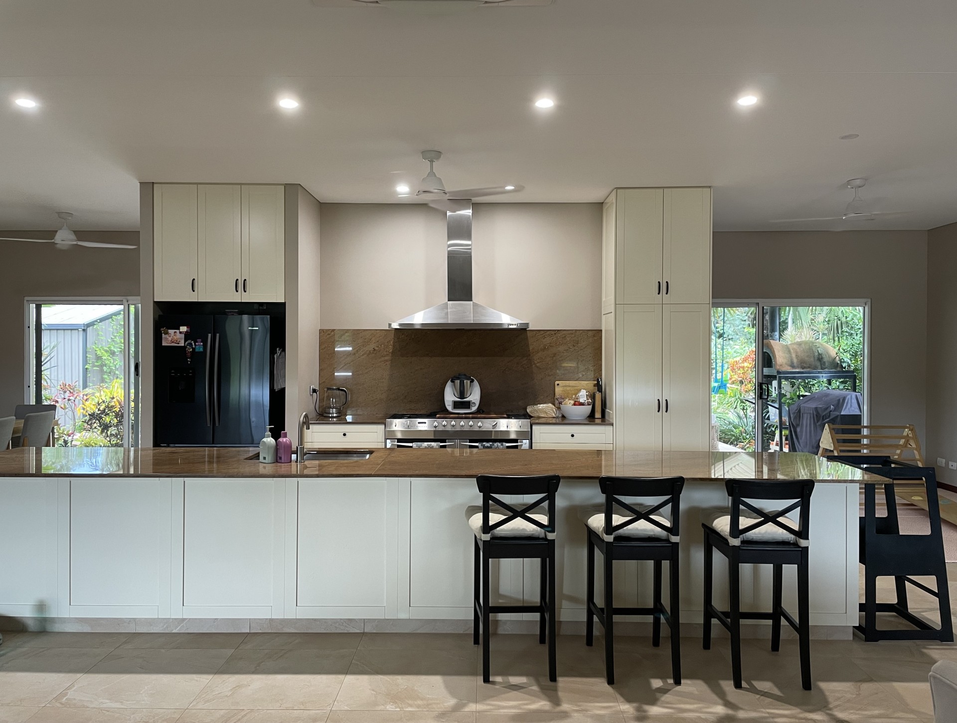 The kitchen is located centrally in the house and has extensive storage, a double Fisher Paykel oven, soft-close drawers throughout and space for the usual dishwasher, microwave, large (water-plumbed) fridge. The 4.8m stone bench top has plenty of room for cooking and entertaining large groups.
