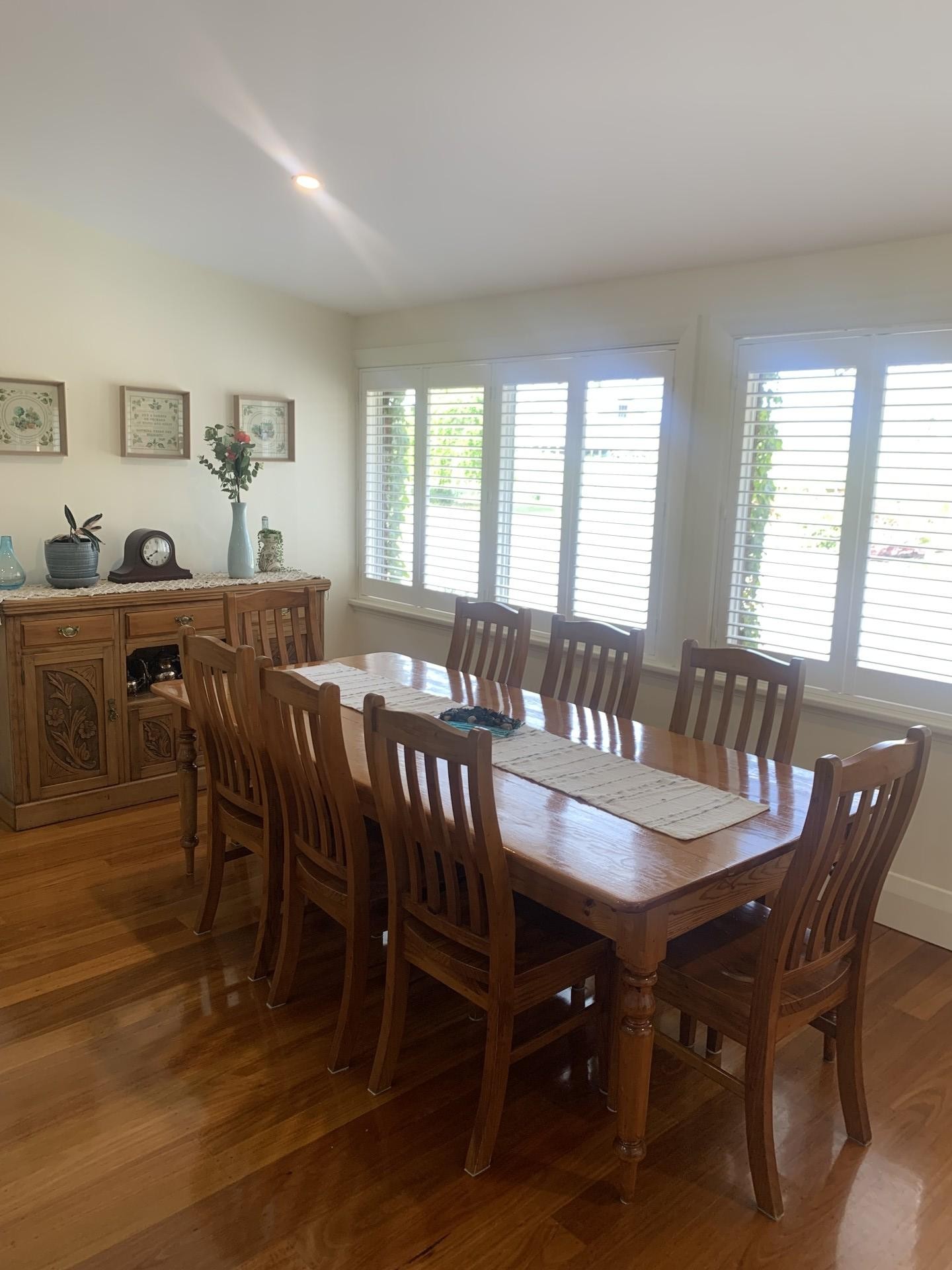 The fully renovated double brick house with colorbond roof is all electric and has a 6.6kw solar system. The kitchen has all modern appliances including induction cooktop, Caesar Stone benchtops and a butler's pantry. The kitchen opens up to the dining and living areas which connects to a spacious outside covered deck entertaining area. The loungeroom then comes off the living area. There are three large bedrooms the main with ensuite and walk in robe the others having built in robes. Main bathroom with separate shower and bath. A 300lt heat pump HWS provides plentiful cheap hot water. Wide passageways connect the rooms incorporating linen storage and book shelving. All rooms are sunlit through ample windows, timber shutters being a feature in the bathrooms, laundry and dining areas. Quality curtains and dual roller blinds cover the larger windows in the living, lounge and bedrooms. Floors are polished timber with carpeted bedrooms. The heating/cooling is controlled by an Actron ESP Platinum ducted system with area zoning. The loungeroom also has an inbuilt combustion heater. A brick double garage and outside toilet adjoin a double carport.