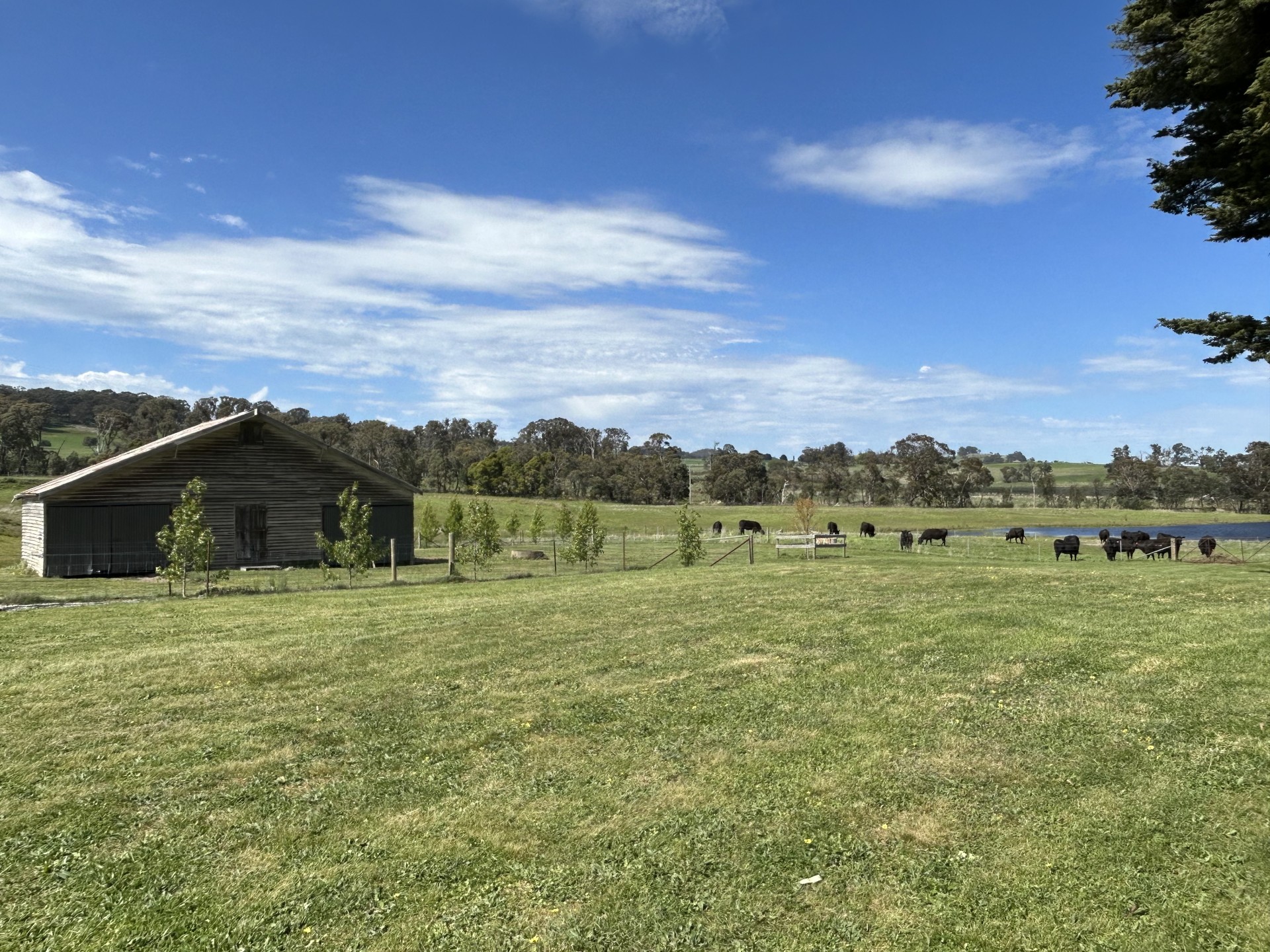 The property is divided up into 7 paddocks with much new and electric fencing. Established pasture with good fertilizer history. Approximately 18 acres was resown to pasture in 2022. There are 2 huge dams one of which is fenced off from stock and supplies water to the house yard/garden. All paddocks have troughs bar one dam paddock. The dams were previously licensed to irrigate an orchard and can be relicensed if desired. There is a pump shed on one dam. For those who like to fish the dams are home to native fish including breeding Murray Cod up to 90cms. A permanent creek crosses the front corner of the property.