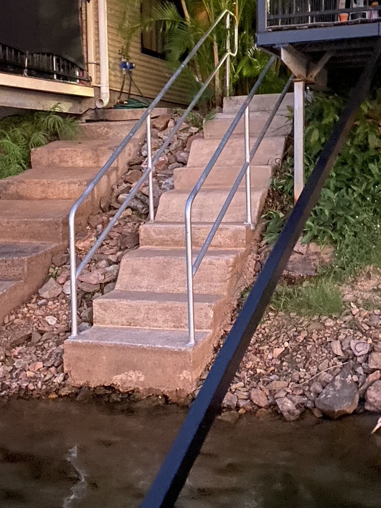 • Concrete steps on both sides of the bungalow gives access to the lake