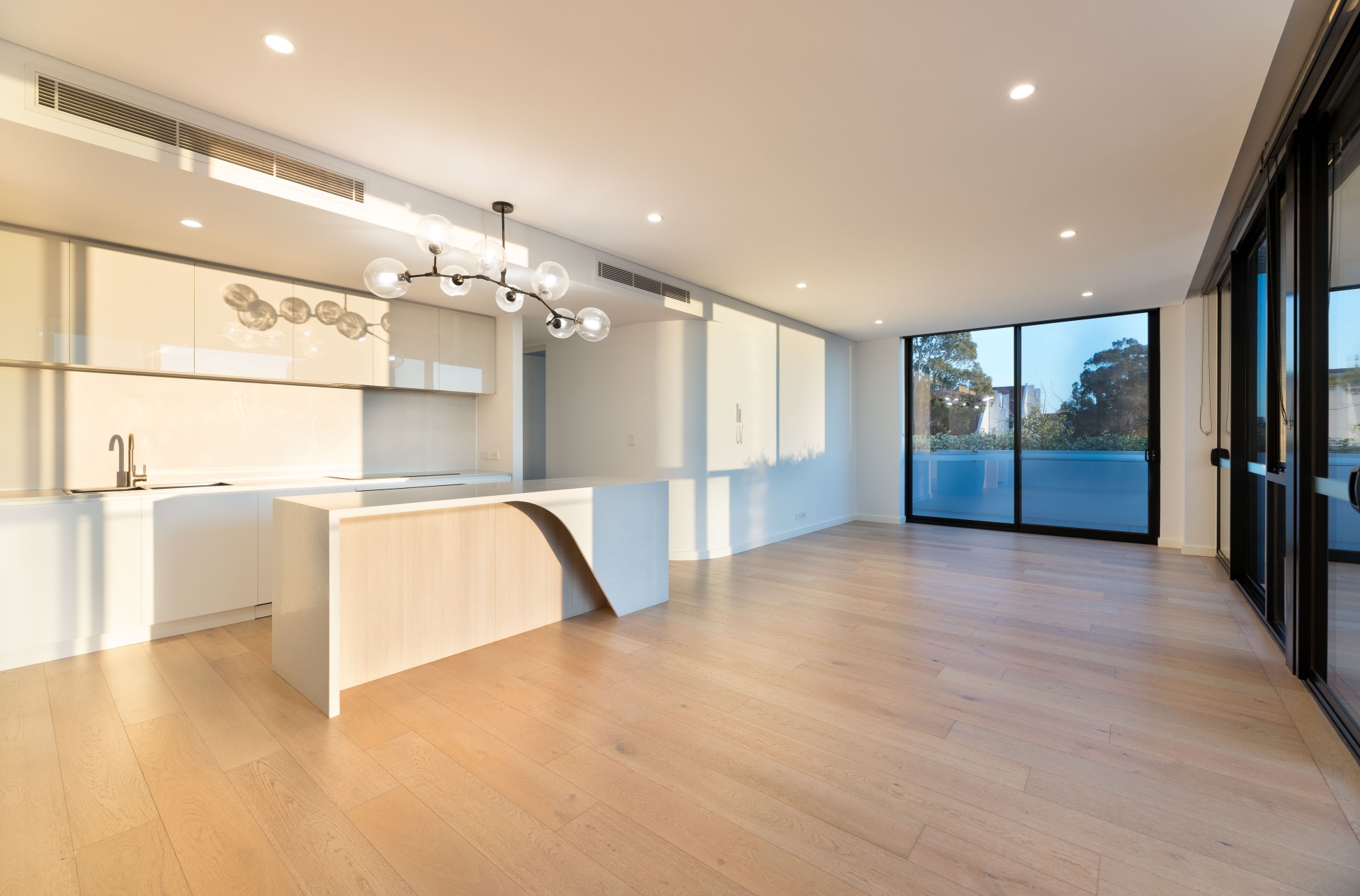 The area where you will spend most of your time however is the fully appointed Kitchen with an open plan, large Living and Dining. The main living area of this apartment really is the focus of all that you will do and enjoy with extra high sliding glass doors and windows opening onto your private wrap-around balcony. Every thought and consideration has been given to the design with the greater depth part of the balcony - suitable for outside dining - tucked behind stacking screens to provide shade if required.