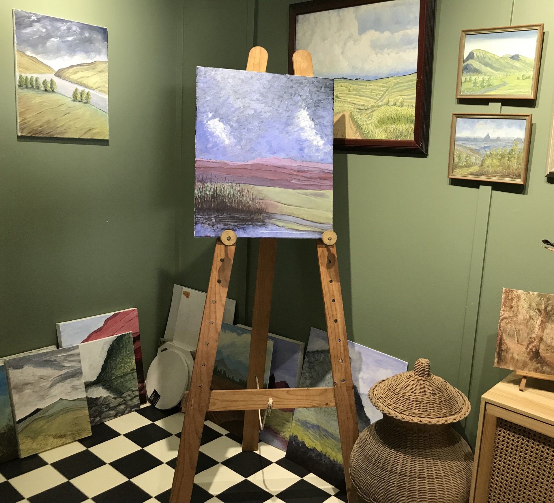 It has two double bedrooms with bathrooms, a single bedroom (currently used as craft-room), a roomy kitchen and dining area merging into a wide lounge area with an art gallery to one side.