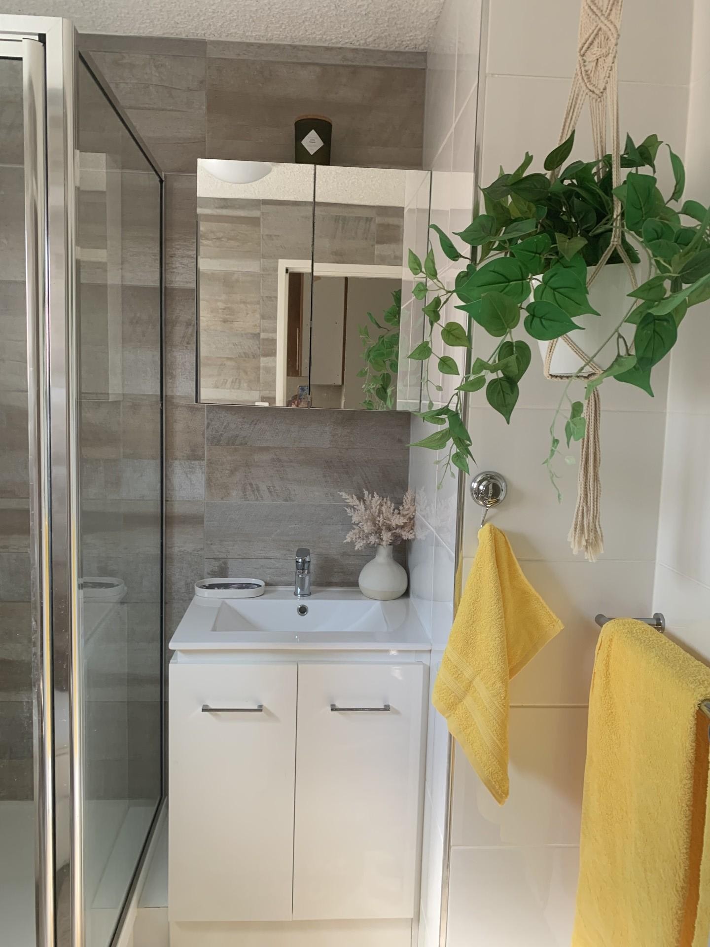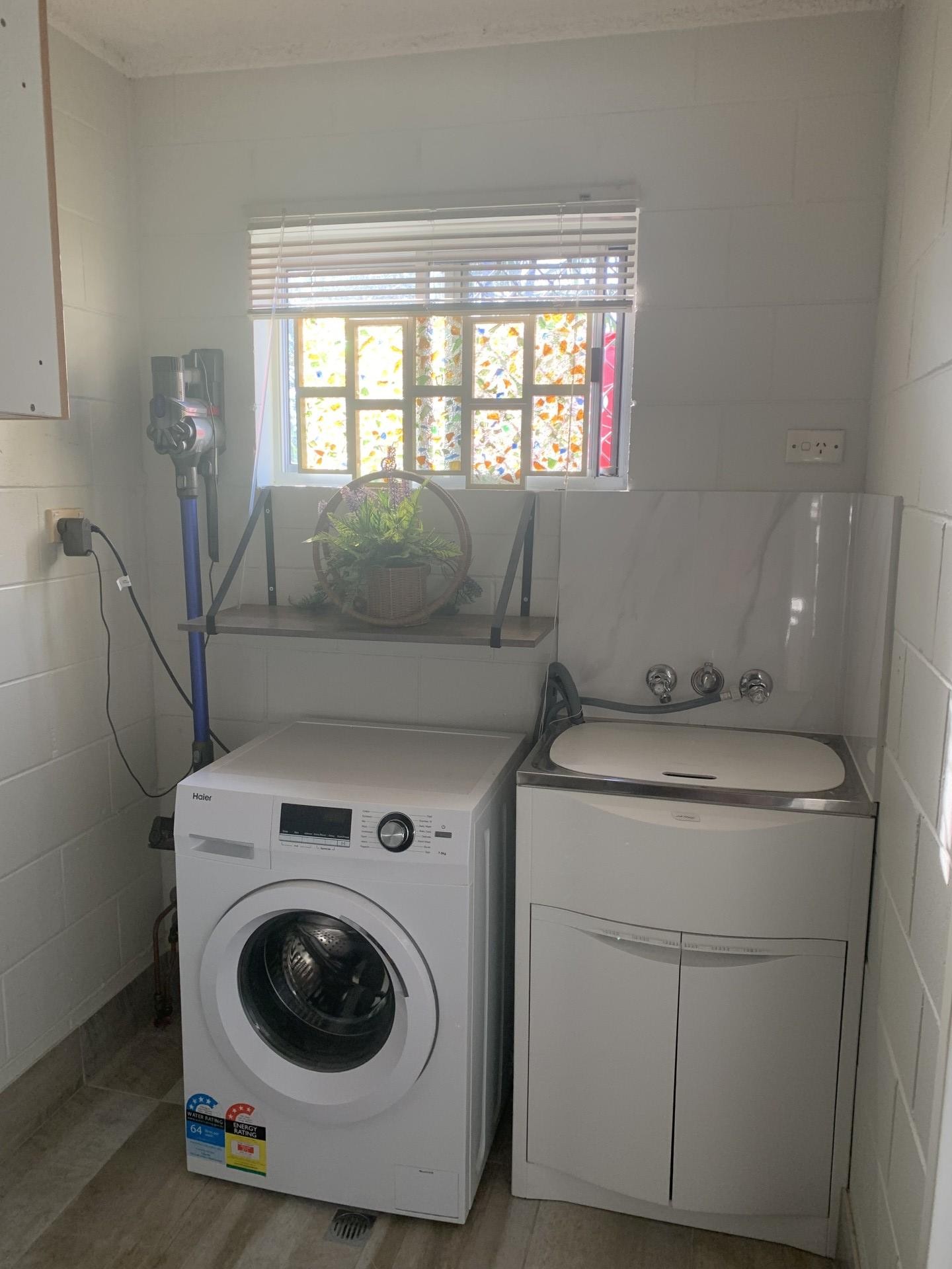 The unit is tiled throughout for ease of cleaning.