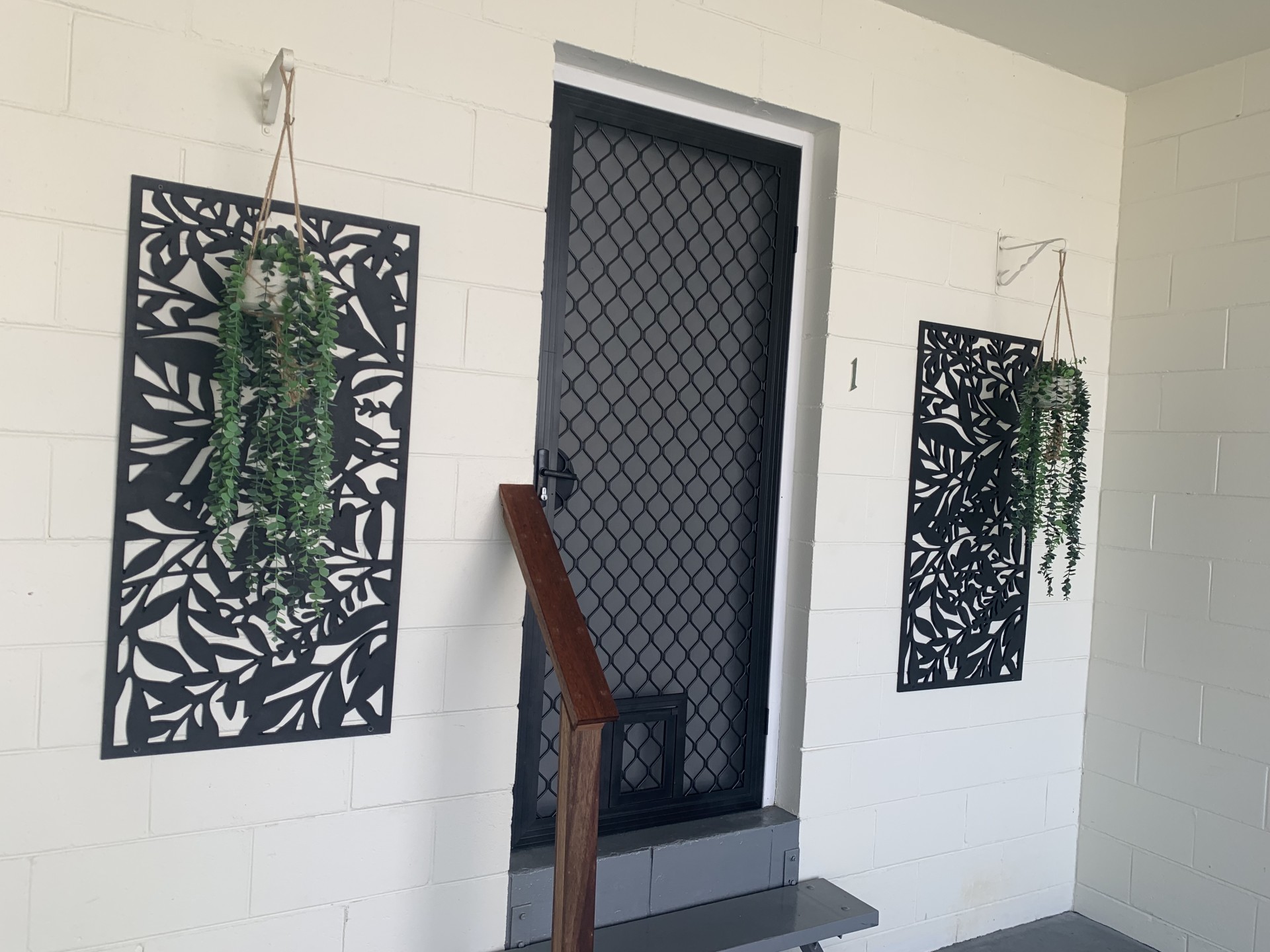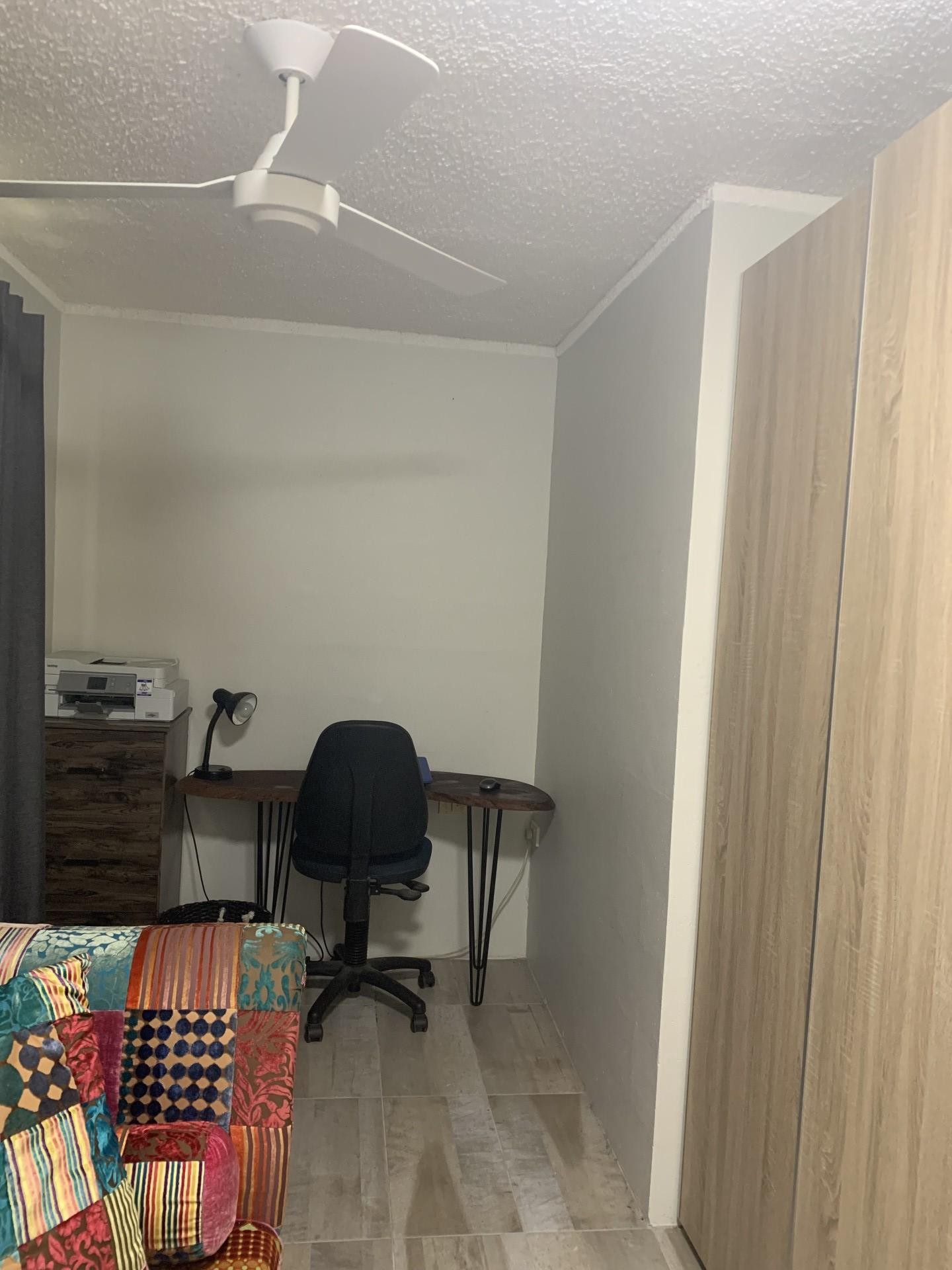 Security screens and fans throughout