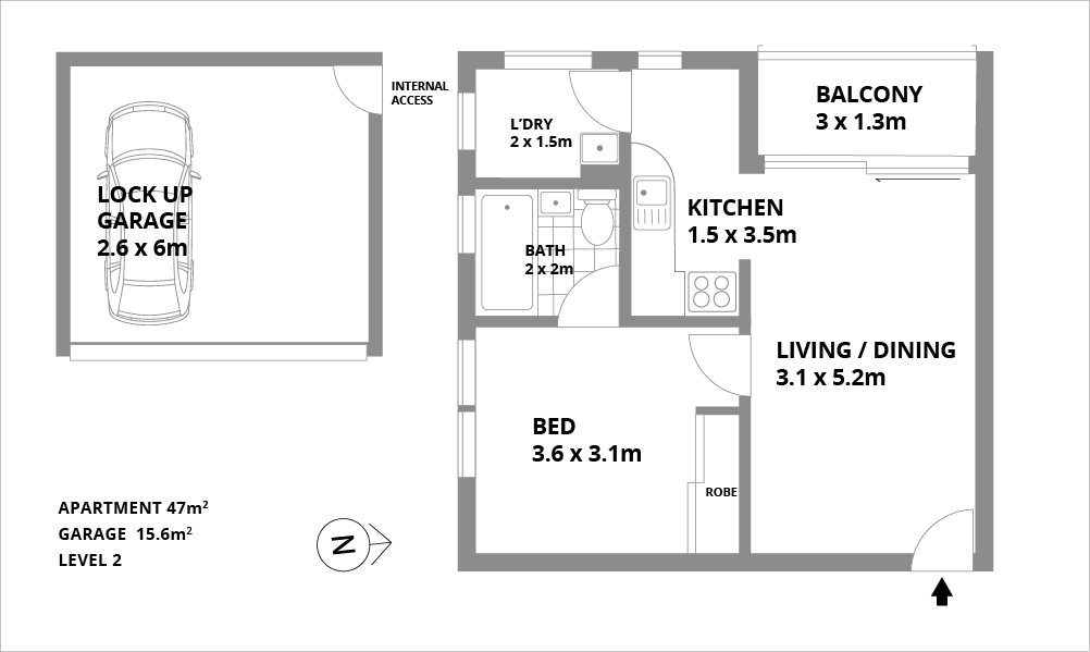 • Internal laundry with spacious storage area, single
