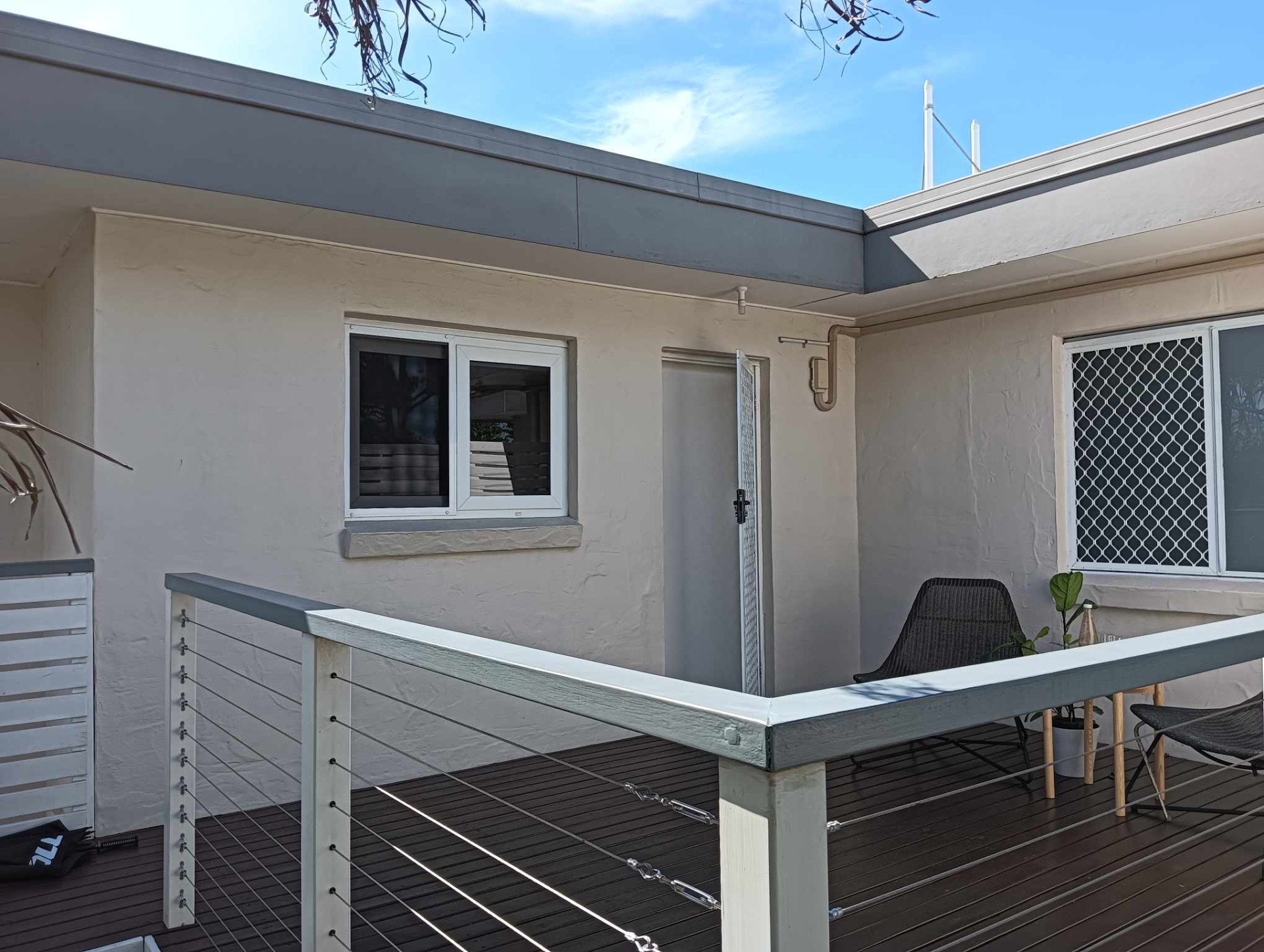 * gorgeous timber stairs and deck providing a grand and secluded entrance to the apartment;