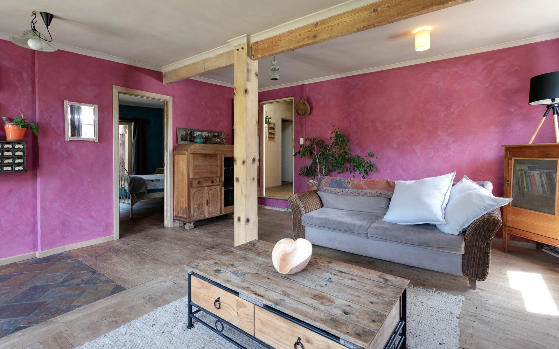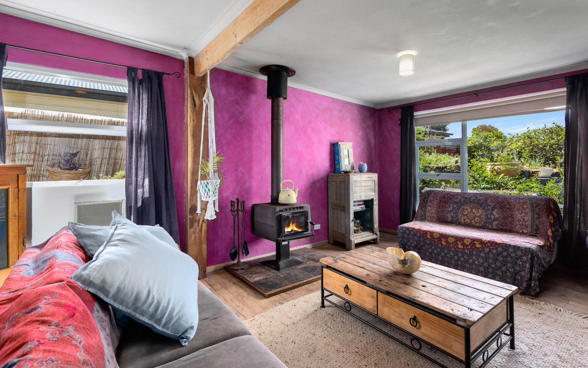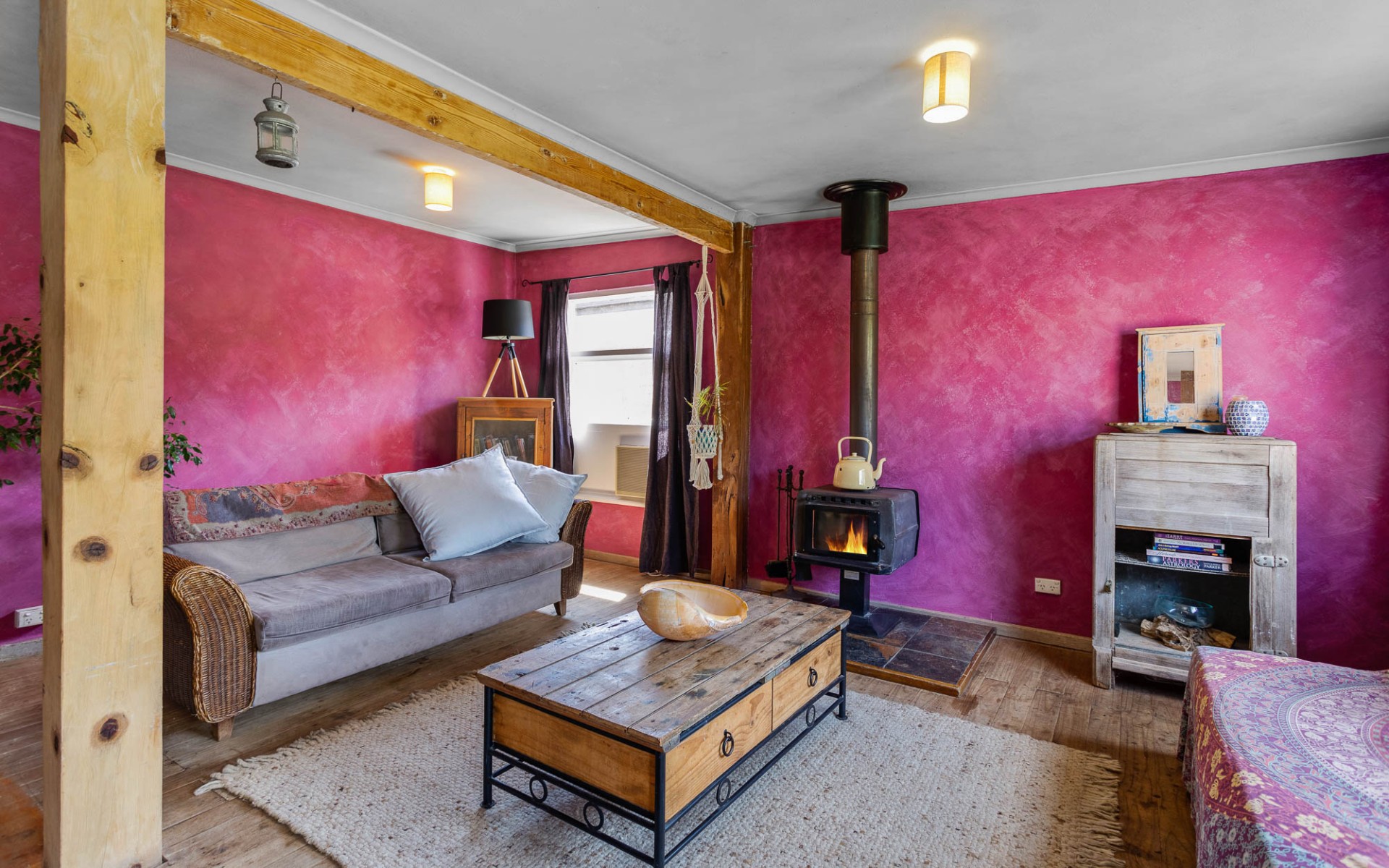 -Lounge room with combustion heater