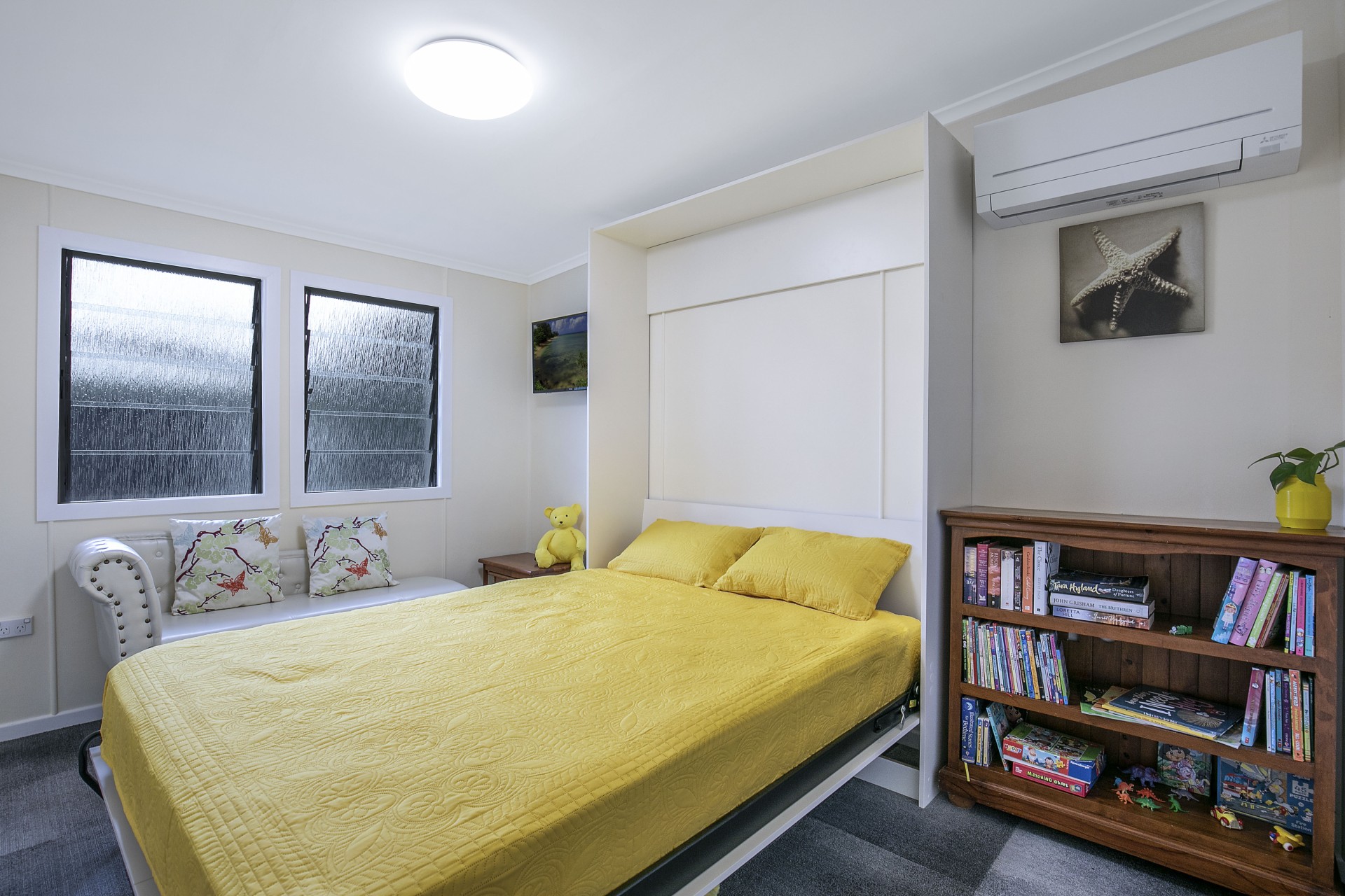 Light and fresh air fill the house through the awning windows that give protection from rain even when open.