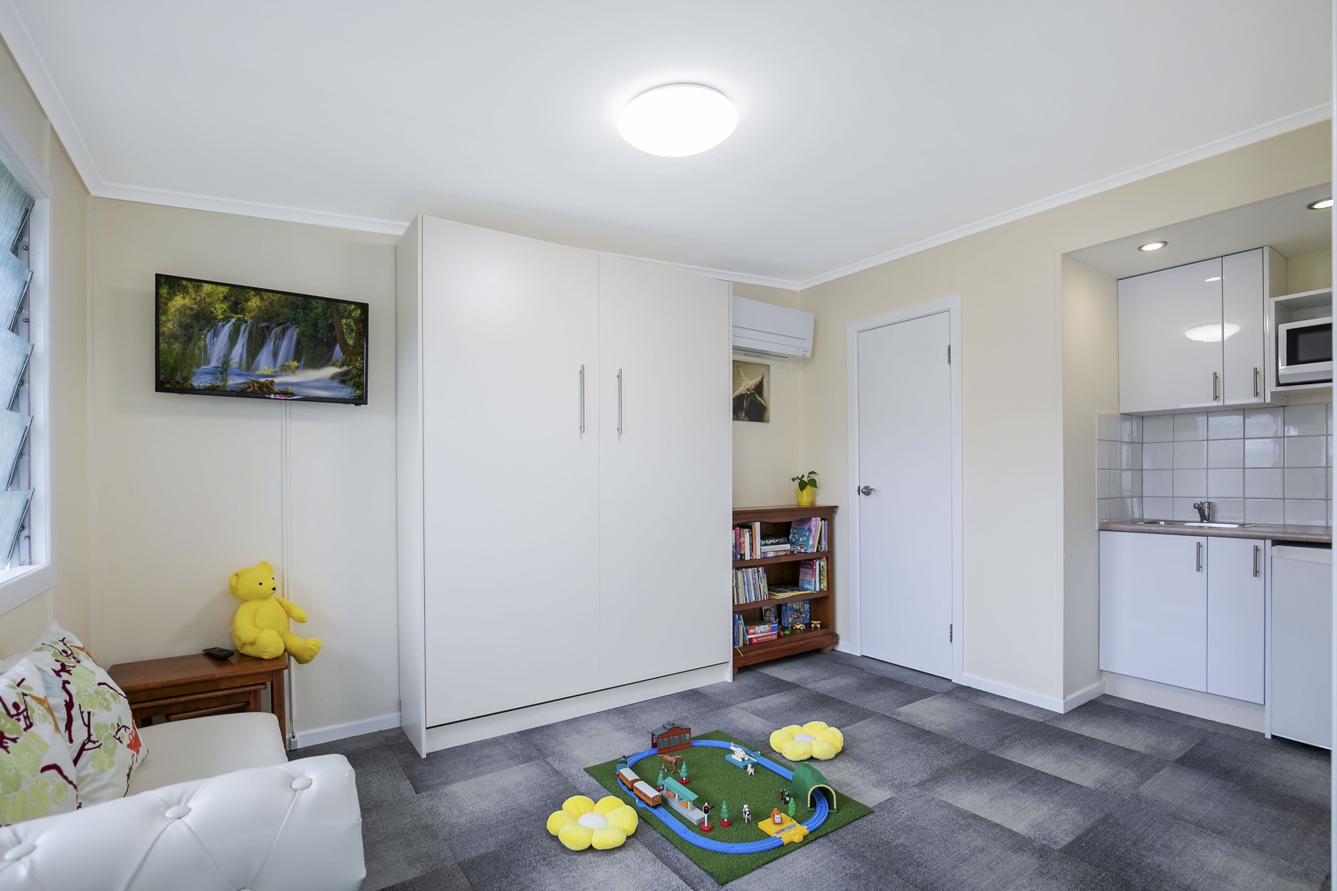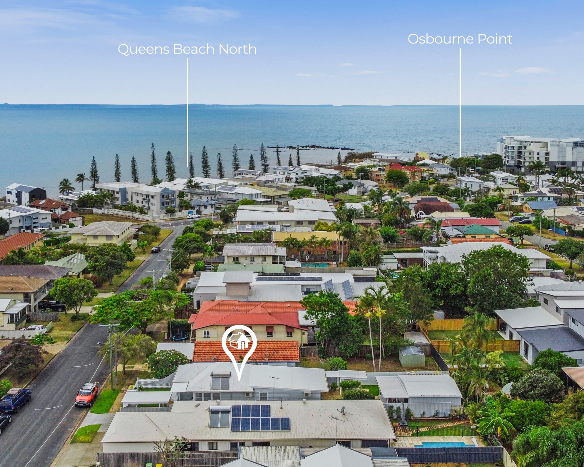 It sits on a quiet street with only a four-minute stroll to Queens Beach North.