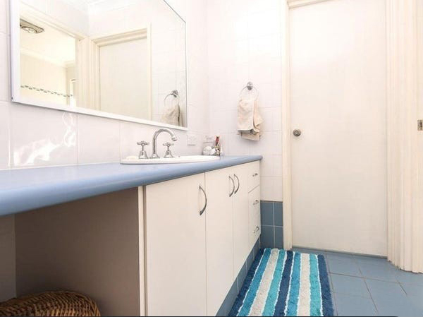 Main bathroom has separate toilet, vanity and storage.