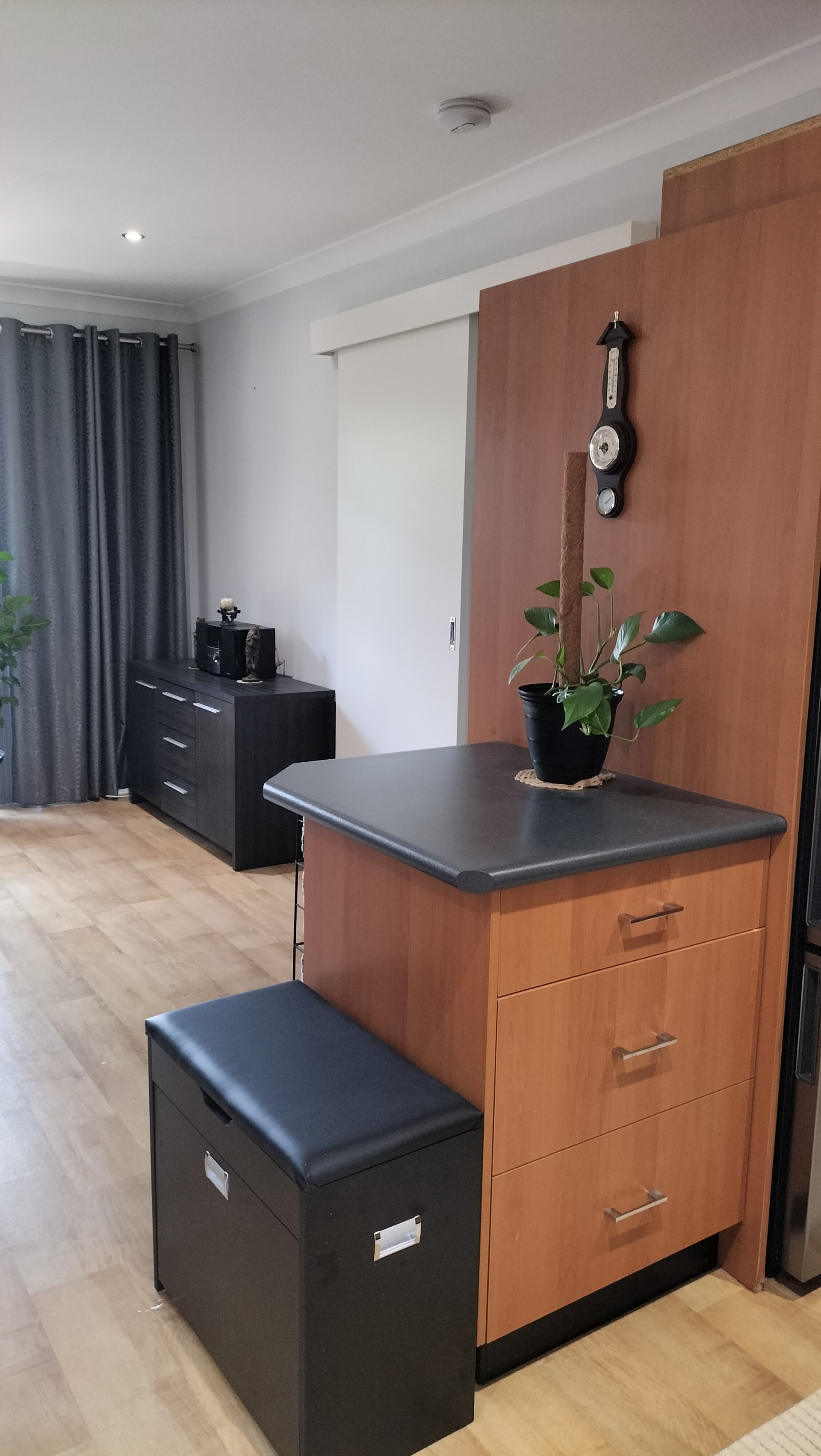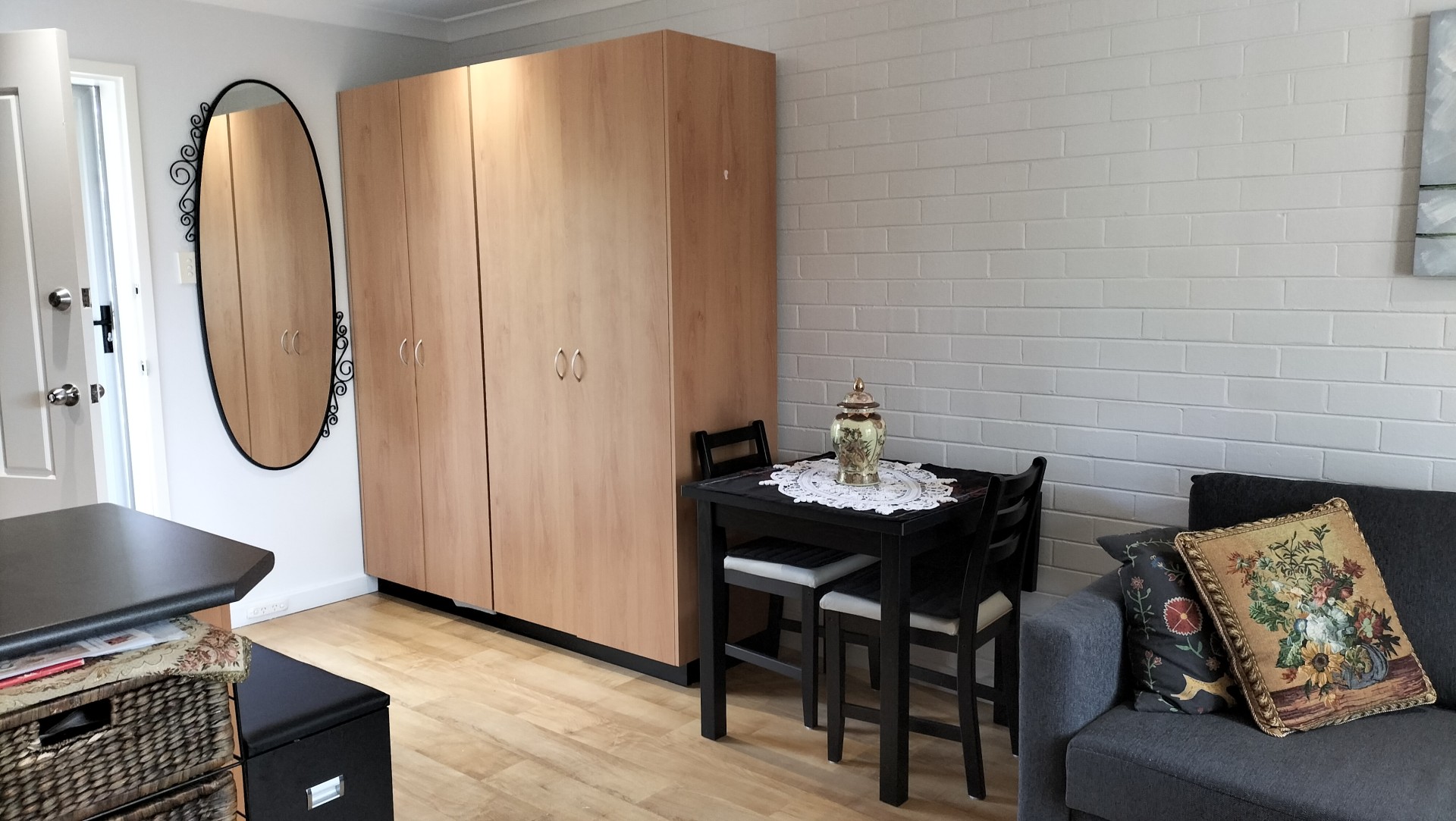 - The living area is spacious with extra storage