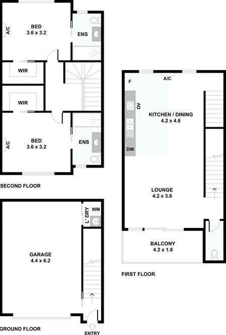 Second Floor - Two master-style bedrooms with ensuites, WIRs and split-system A/C