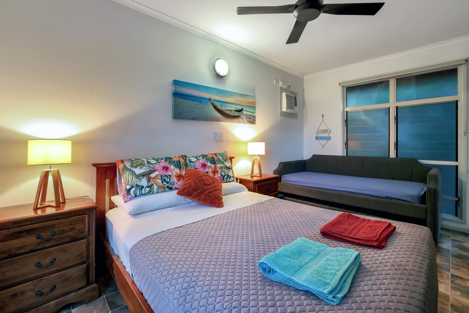 Each house is distinctly special and I have chosen to refer to them as "The Beach House" and "The Windmill House". Both houses are airconditioned throughout with ceiling fans in all rooms and the louvred windows can be opened to allow the "all-year round" refreshing sea-breezes to circulate. There are also large spacious inbuilt wardrobes and drawers in all bedrooms and large inbuilt cupboards throughout both houses. And the large verandahs are great for outdoor dining and scenic views (Beach House has fabulous beach and sea views). As both houses are elevated, there is the additional bonus of having cool, shaded and very spacious fully paved under-house areas for outside relaxation and to enjoy a BBQ with family and friends. Both houses also have undercover parking spaces. Furthermore, both houses have been built with sufficient elevation that will readily allow future under-house room extensions if required (they meet building code minimum height requirements).