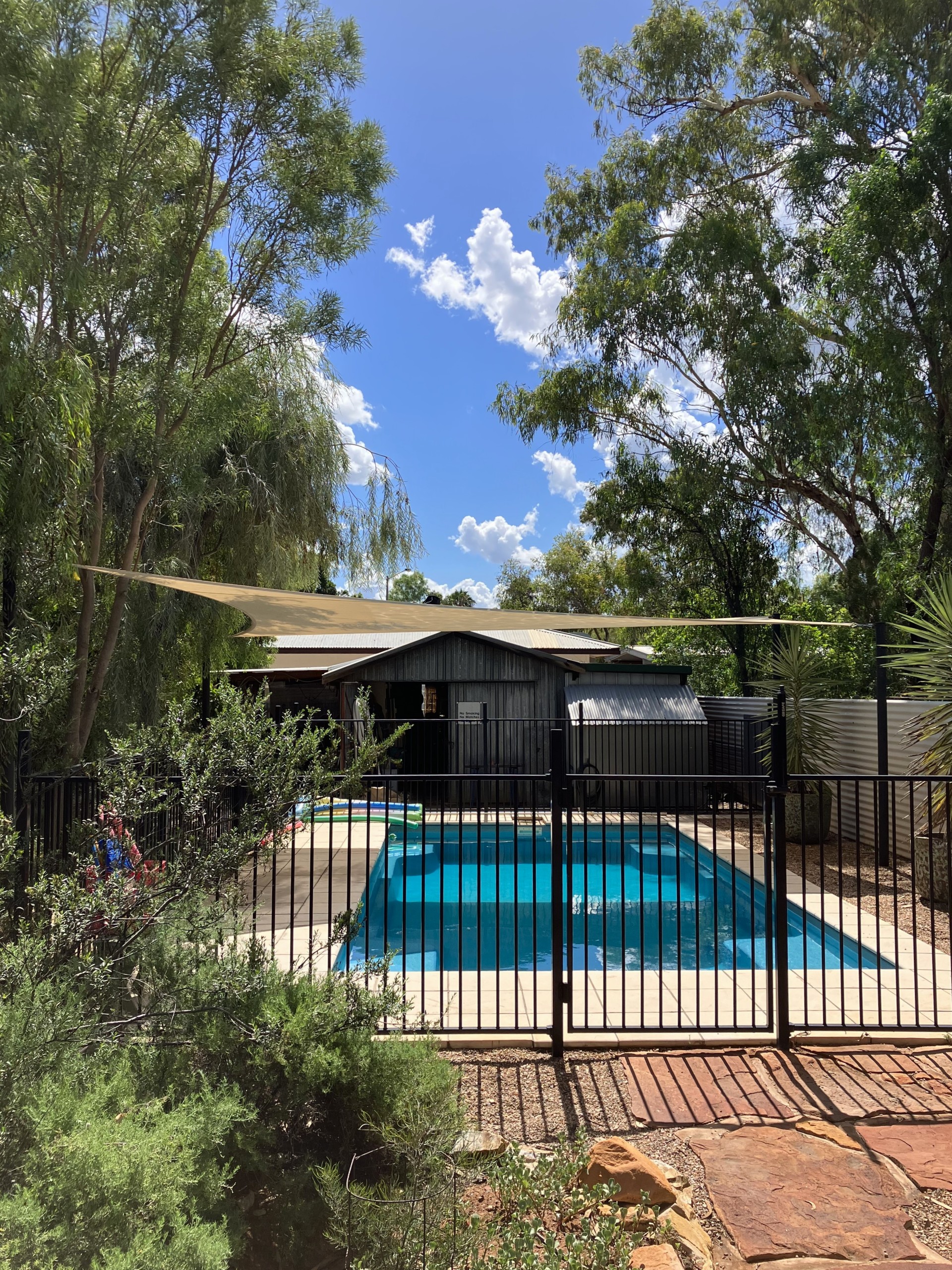 The in-ground saltwater pool with shade provides welcome relief in the summer months. The shade is removable allowing for an extended swimming period well into the year.
