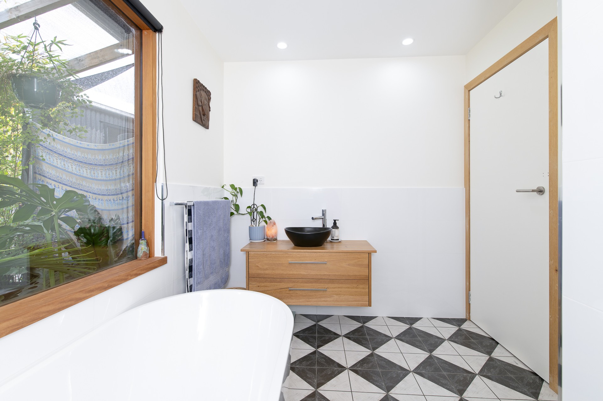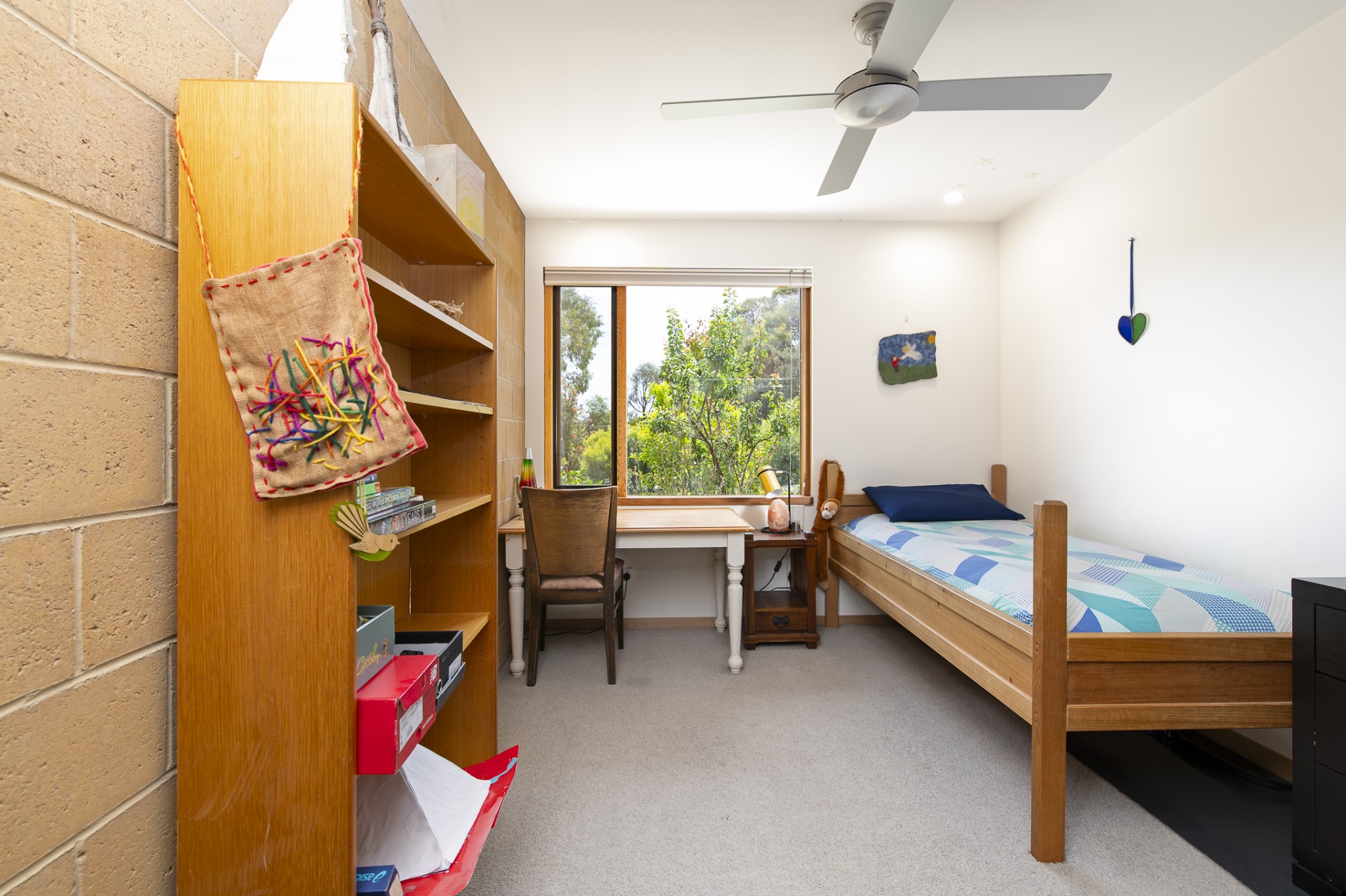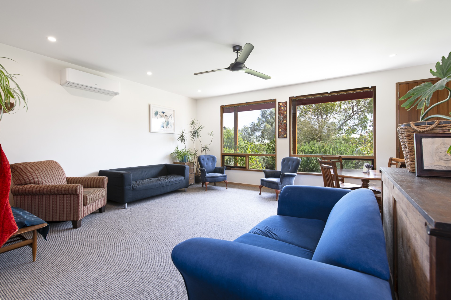 Ceiling fans and a split system air conditioner together with full insulation and angled eaves - keep things comfortable all year round.