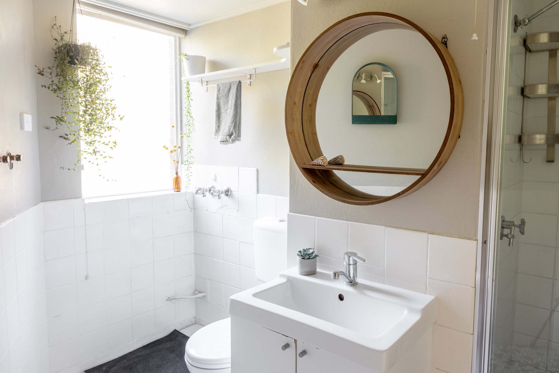- Stylish bathroom with an integrated laundry