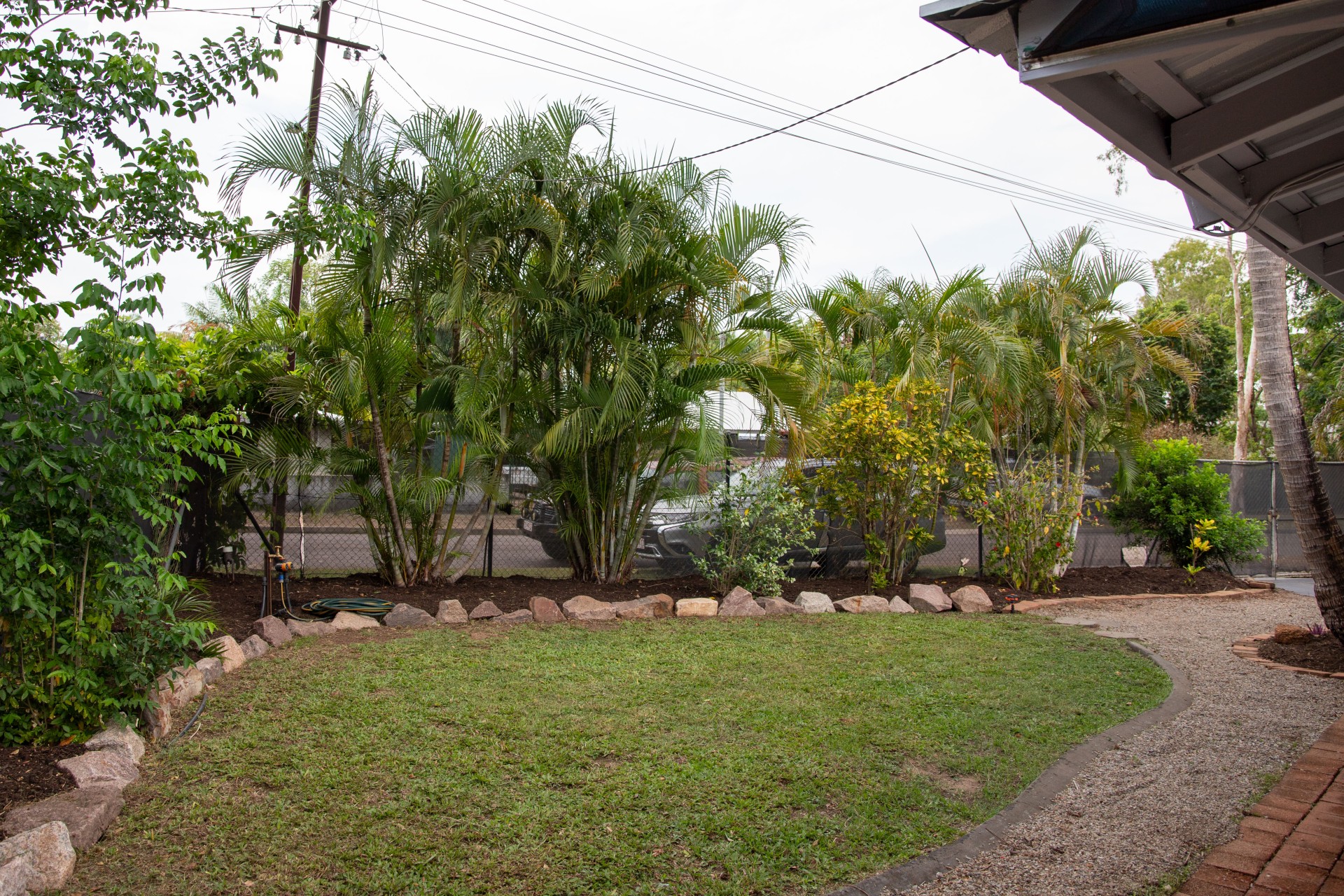 Beautiful established tropical garden with a recently cleared back section, offering a perfect opportunity to start a veggie garden or develop some extra lawn space.