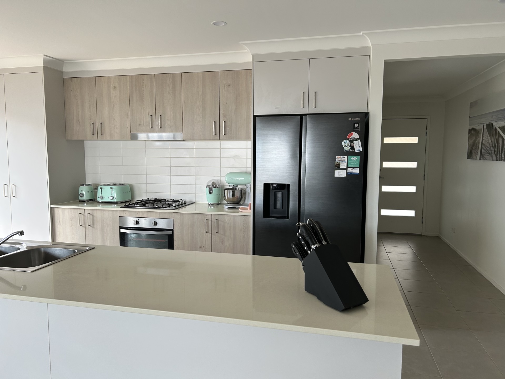 Block. Kitchen flows through to large family/dining area with aircon. Beautiful kitchen with Caesar stone top dishwasher natural gas cooktop
