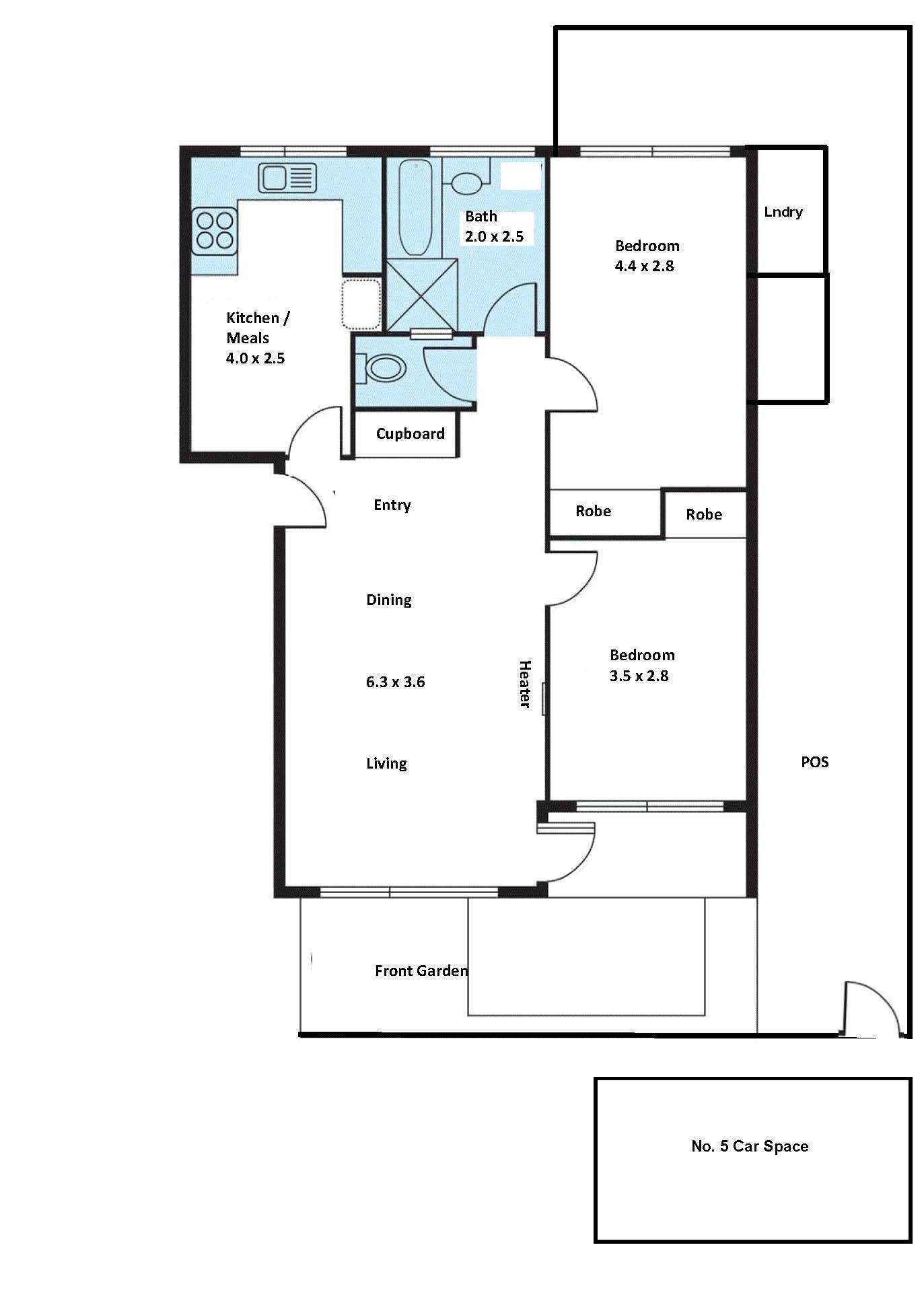 This ground-floor unit is the only one in the block with its own external laundry and separate storage space with a private clothesline.