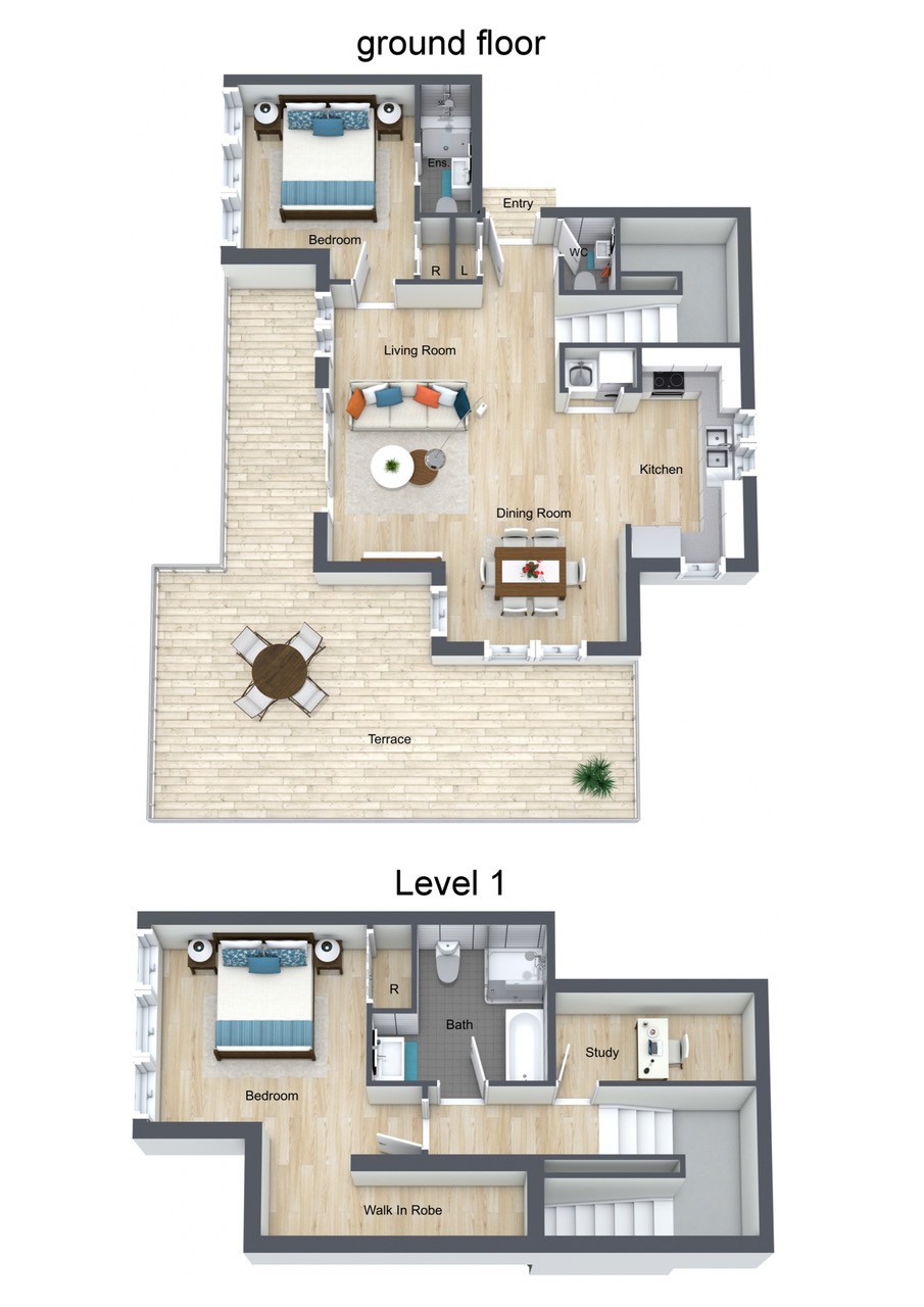 A penthouse packed full of exclusive features separated over 2 storeys. Boasting a private master suite upstairs that includes an ensuite with a bath, huge walk in robe, luxury floor to ceiling windows that overlook your surrounds and a private study room. A second well sized bedroom located downstairs with an adjoining ensuite is connected to the open plan kitchen, living and dining space that opens out onto the impressive 40m2 wrap around open terrace, it's an entertainers dream! This exclusive top floor location is flooded with natural light and spectacular views from all angles due to it's abundance of windows; a very rare opportunity.