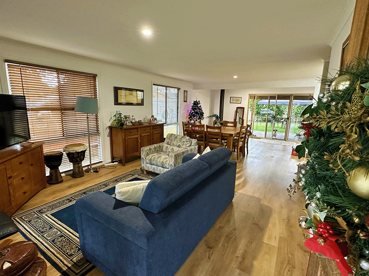 Open-plan living/dining, wood fire stove for winter warming. Double sliding doors for summer breezes. The kitchen has stainless steel appliances. Master bedroom includes walk in robe and ensuite with double shower. Built-in robe in the second bedroom. Main bathroom featuring a massive bath.Seperate laundry with external access. Large front and rear gardens.
