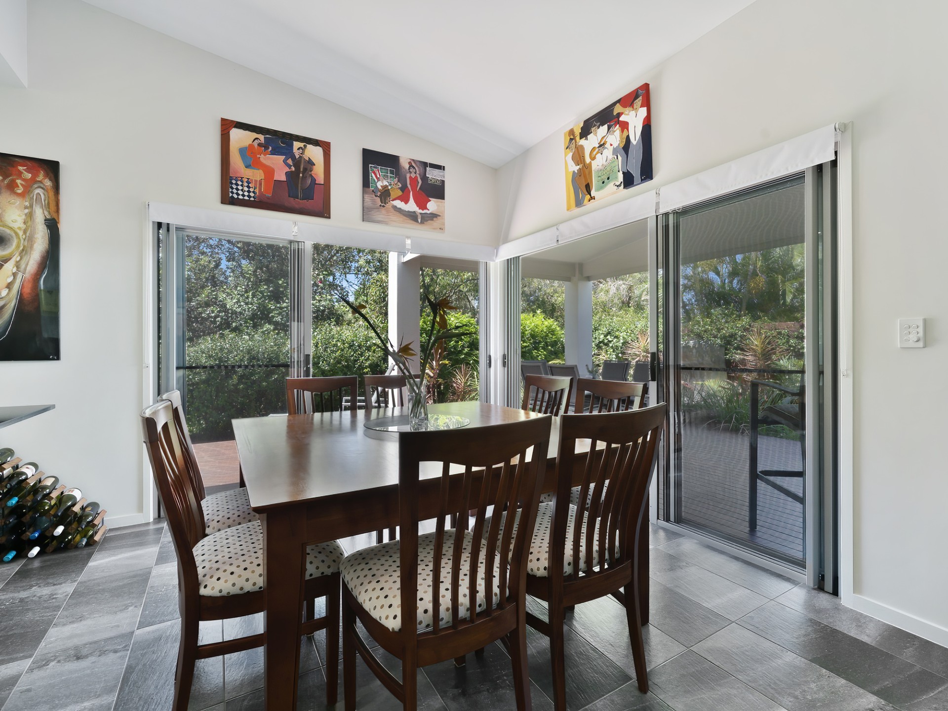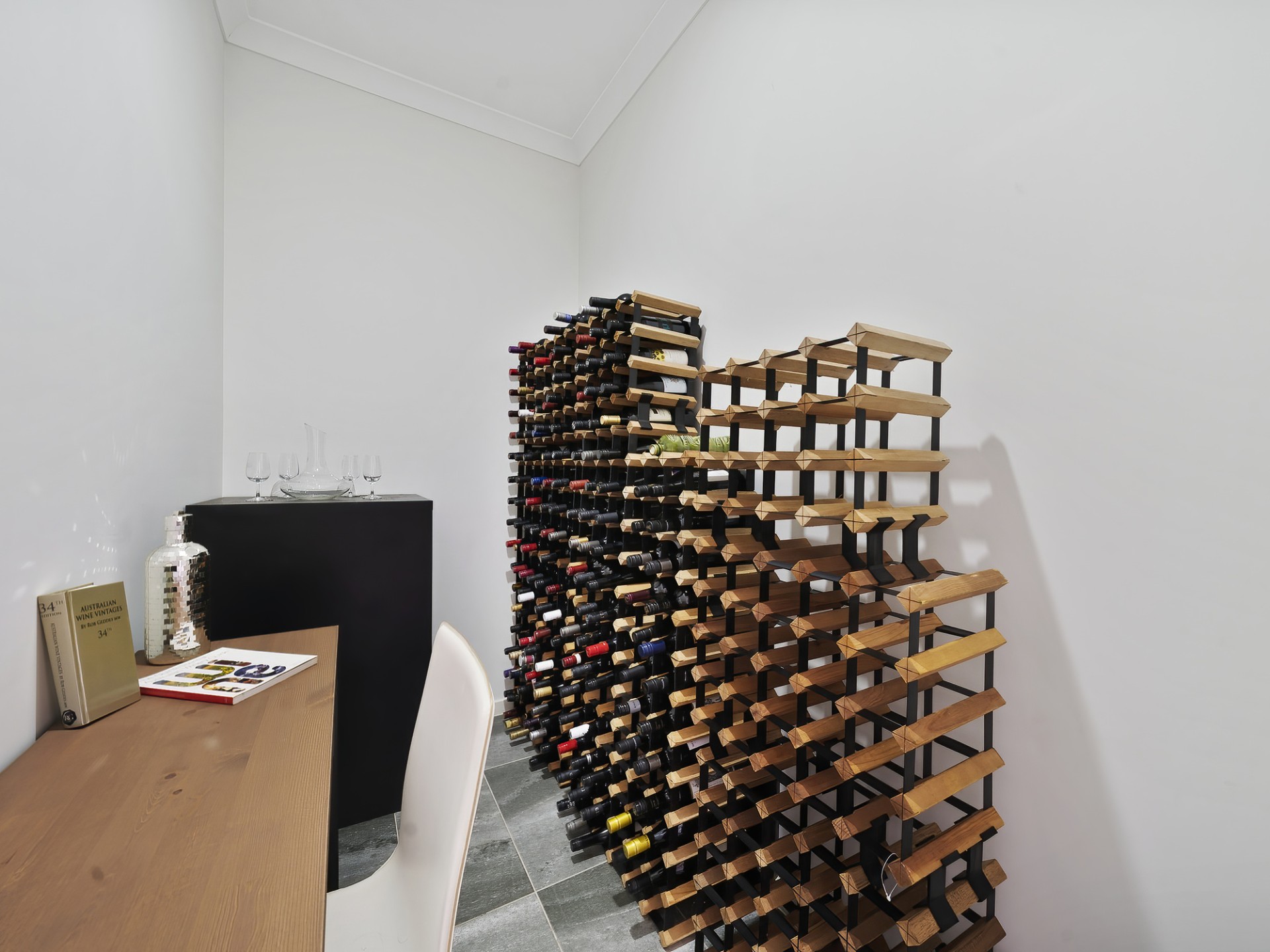 The oversized Master Suite is a retreat in itself with sumptuous inclusions; a study nook, an alfresco deck, an enormous walk-in robe/dressing room and a well-appointed Asian-inspired ensuite, with dual vanities, a walk-in triple shower, and a separate toilet. There is separation from the other bedrooms, also with built-in robes and study nook/desk space, serviced by the luxury main bathroom with a spacious shower, a 2-person spa bath, and a separate toilet. The study is centrally located in the house and can be securely closed off, or used for other purposes, it's currently used as an airconditioned wine cellar.