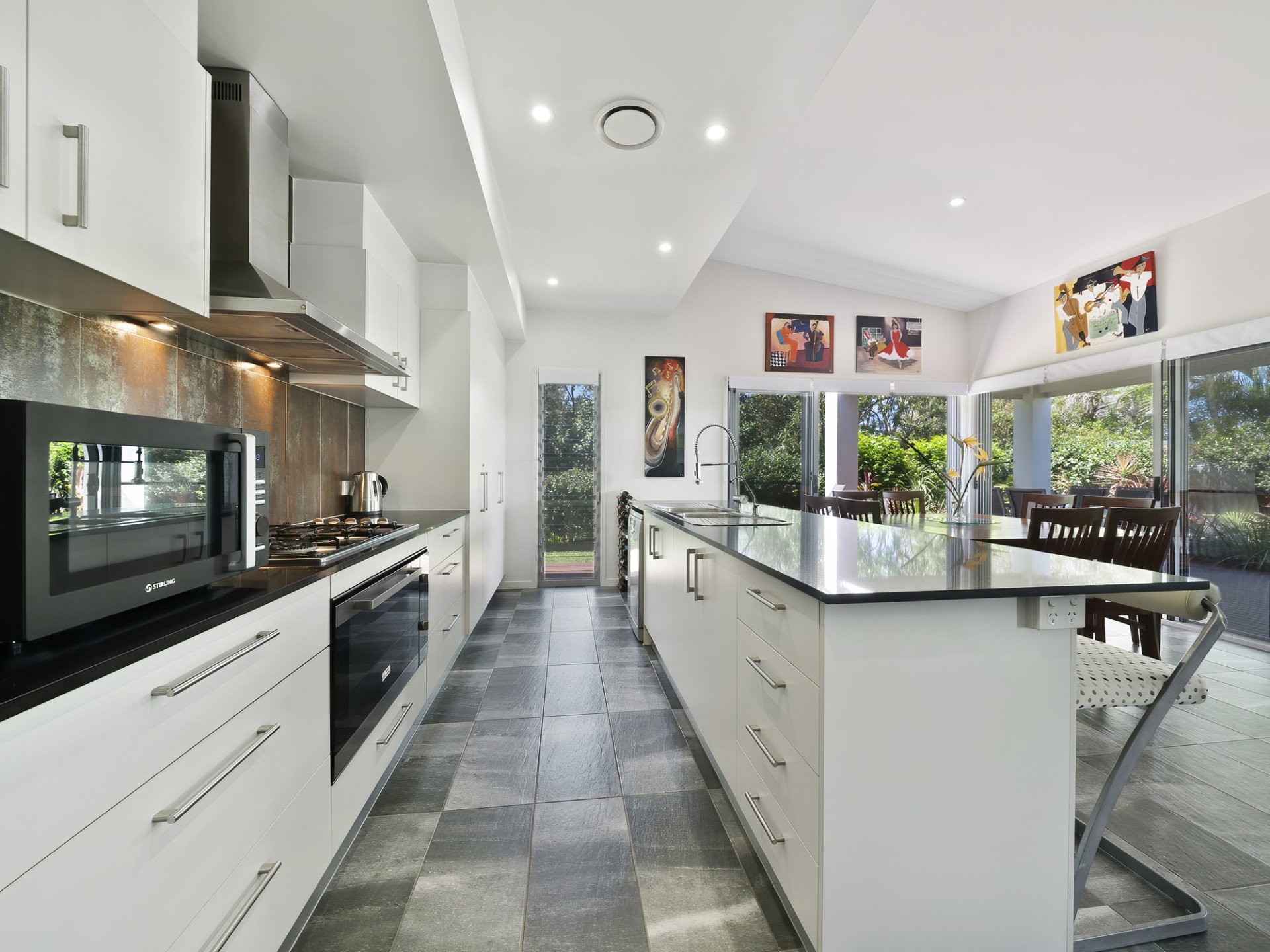 • Chef's kitchen with 900mm 5 burner gas cook-top, oven, &