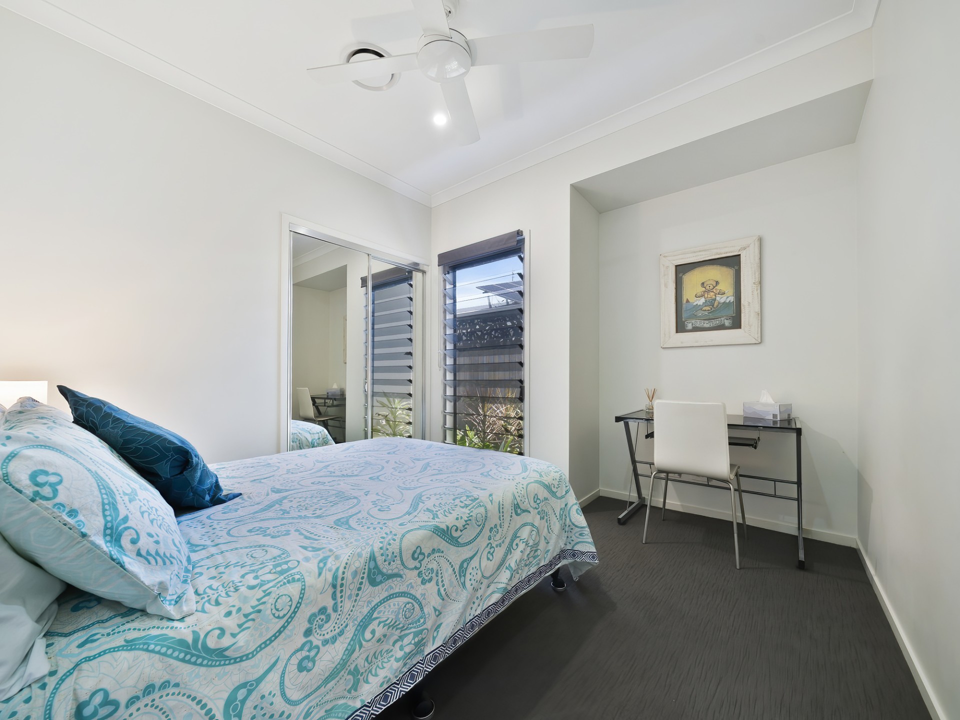 • ceramic tiled living areas and carpets in bedrooms