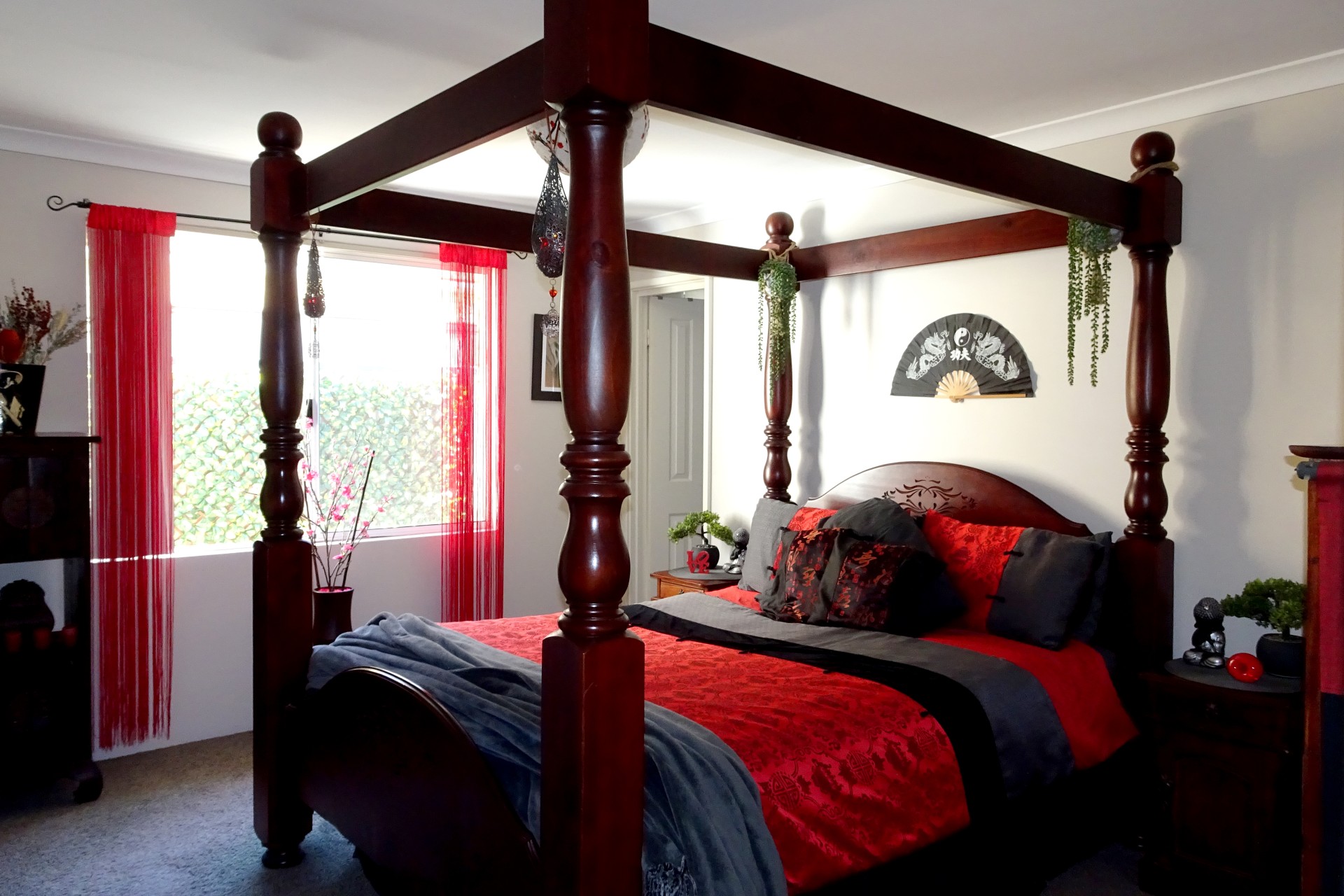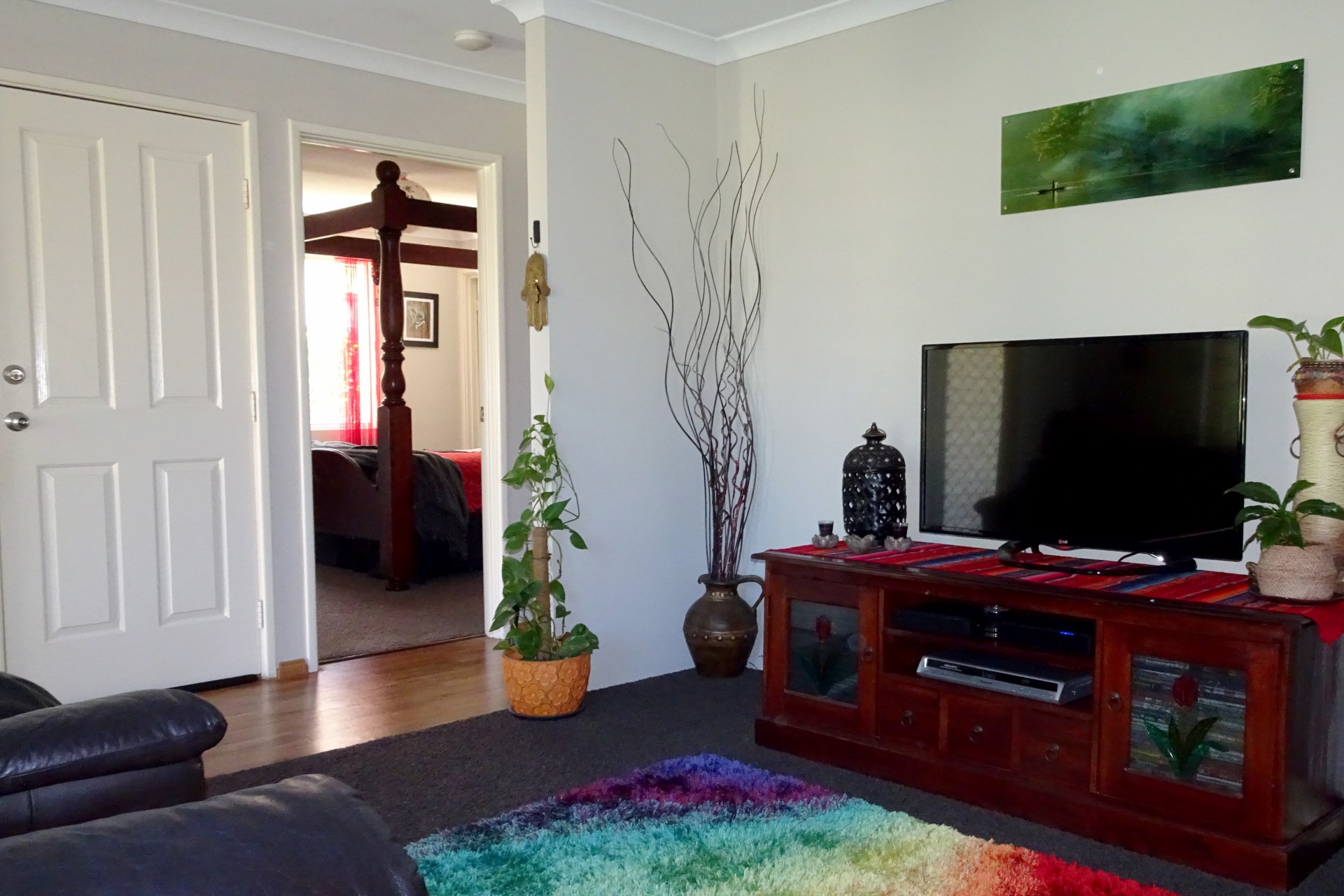 The master bedroom is located towards the front of the house featuring a walk-in-robe and an ensuite with extra-wide shower. Complimented by a lounge area opposite, and overlooking a manicured garden with water feature, this end of the home offers a quiet retreat to enjoy.