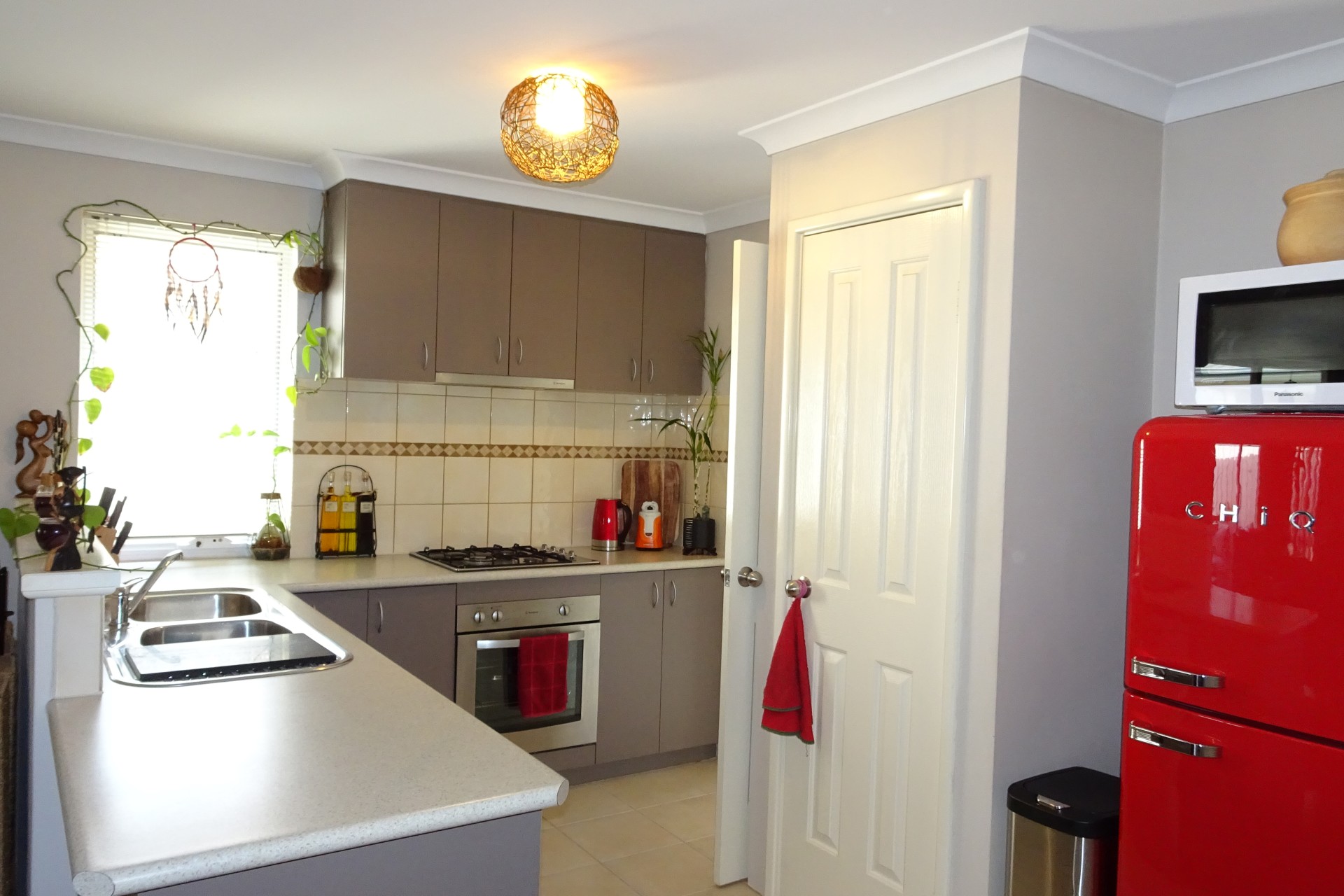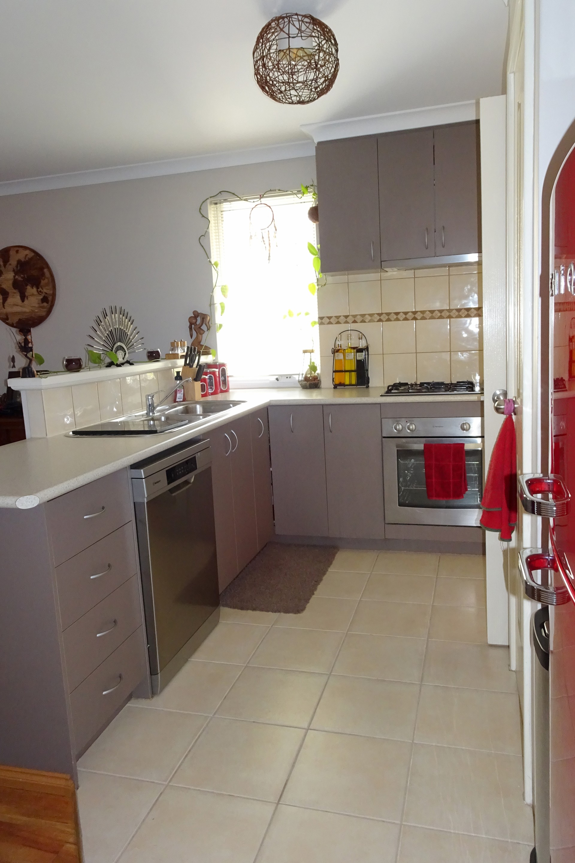 • Well-equipped kitchen with plenty of storage, electric oven, gas cooktop, built-in pantry, and dishwasher