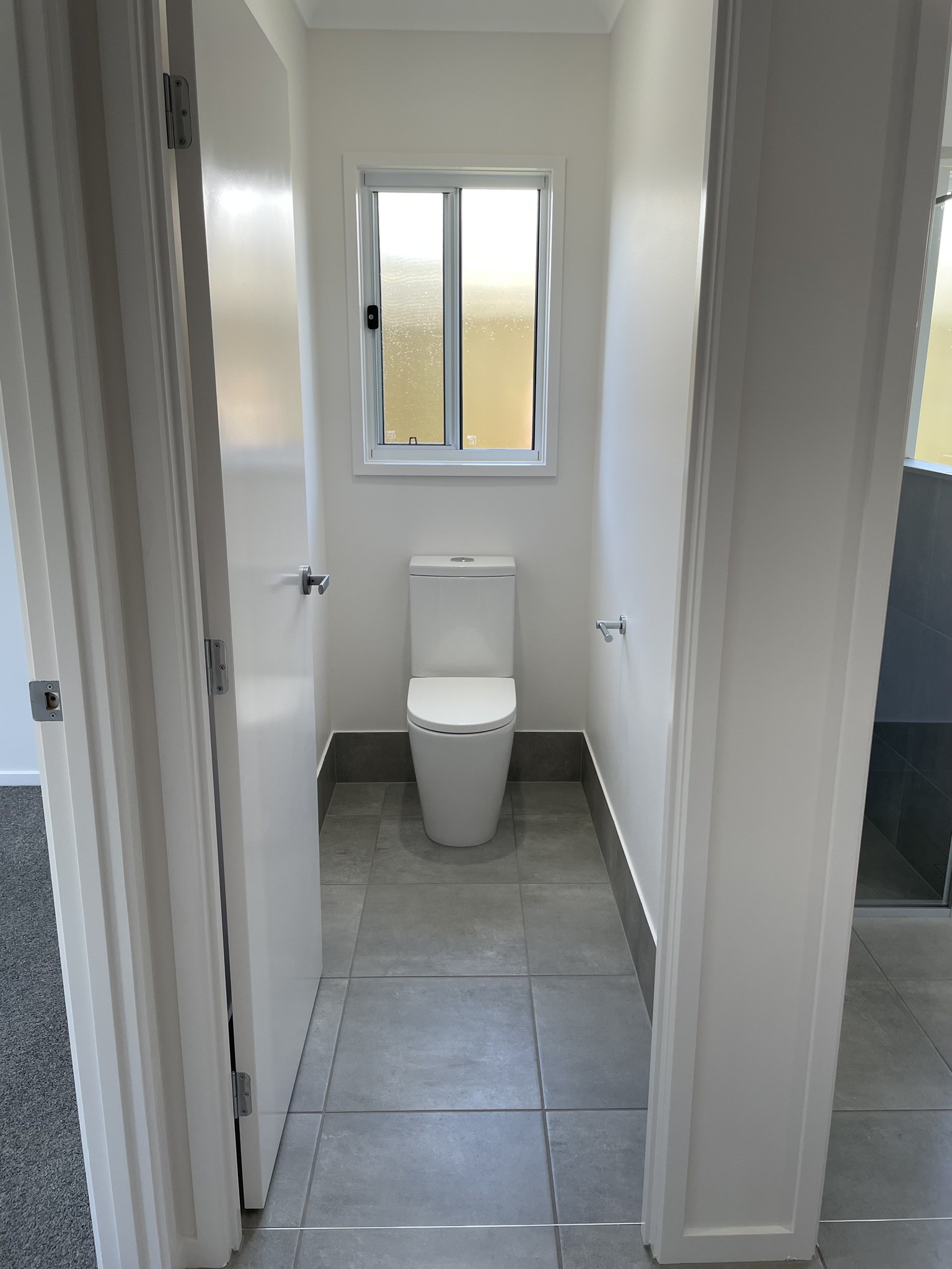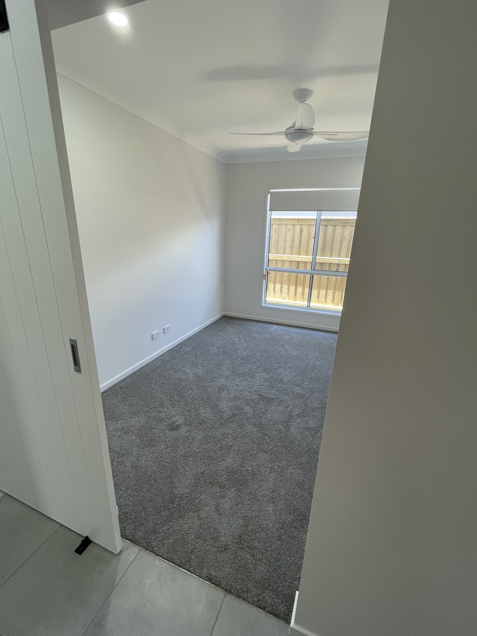 Modern tiles and cozy carpeted bedrooms