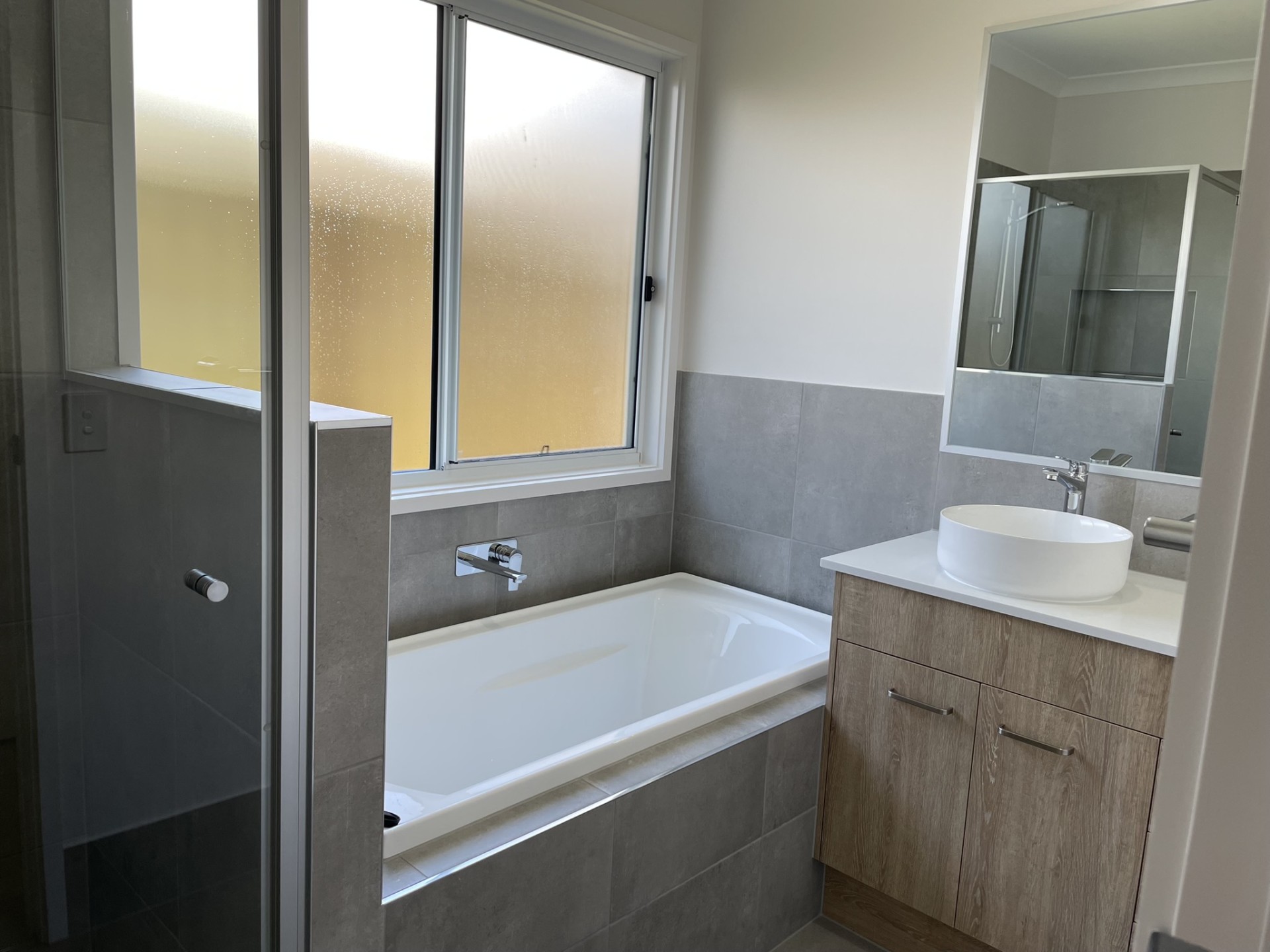 Modern bathrooms with chic recess shower shelves, back-to-wall toilets, and trendy above-counter basins