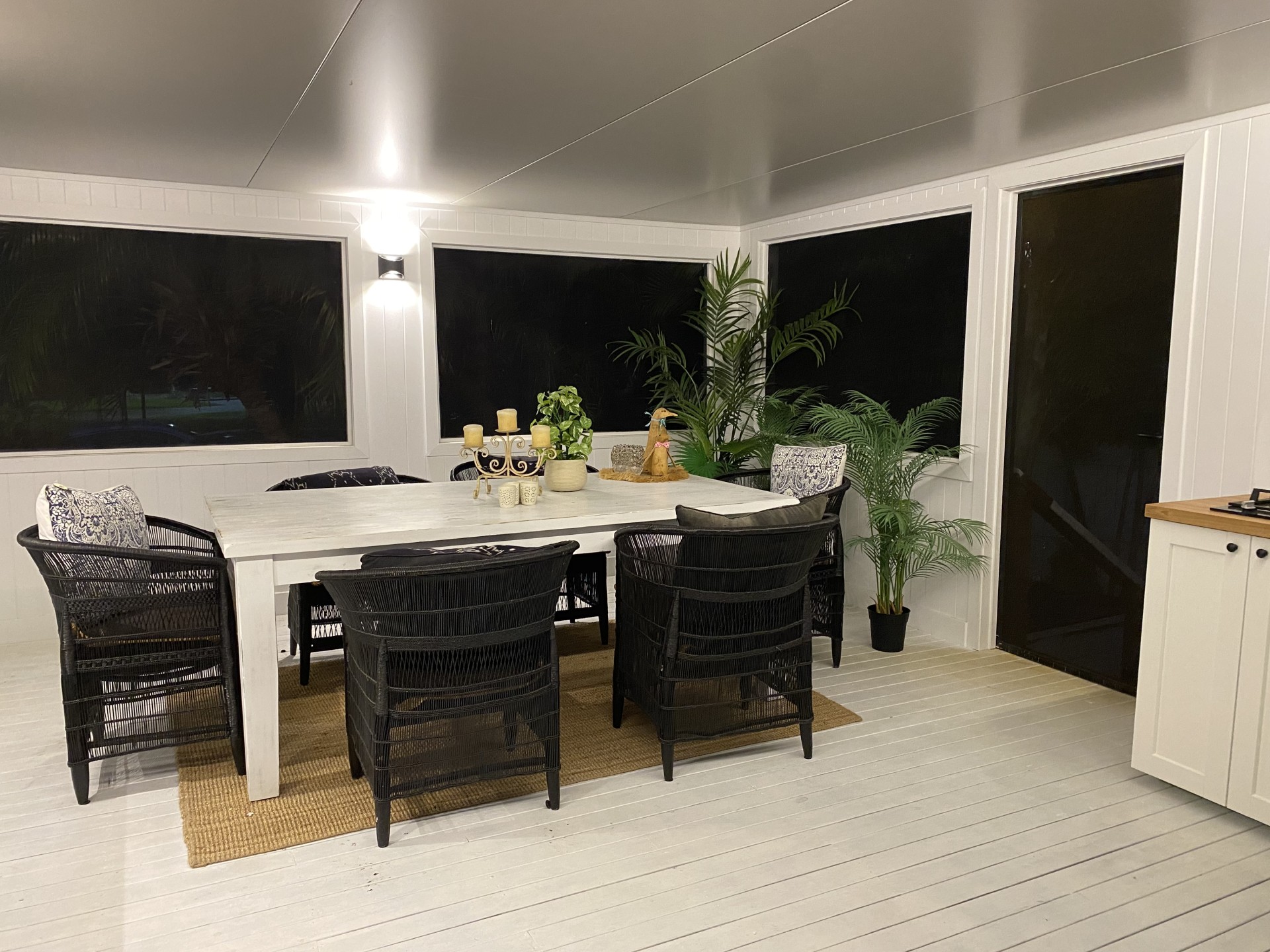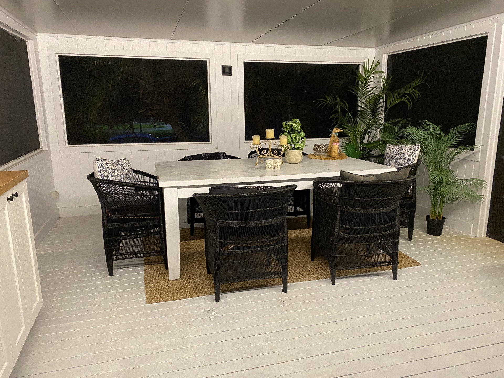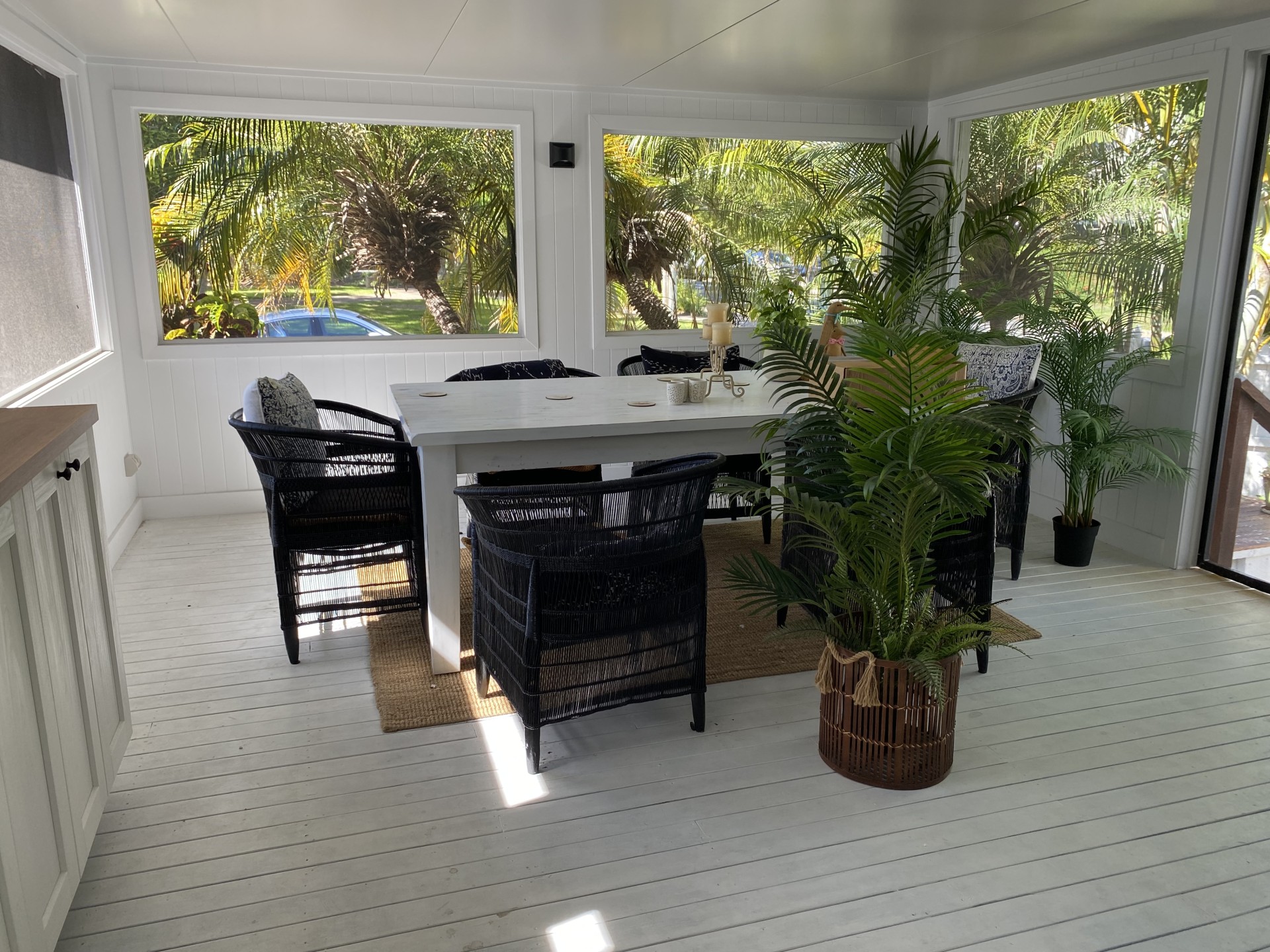 Two outside entertainment areas, one (renovated) fully enclosed with built in kitchenette and buffet.