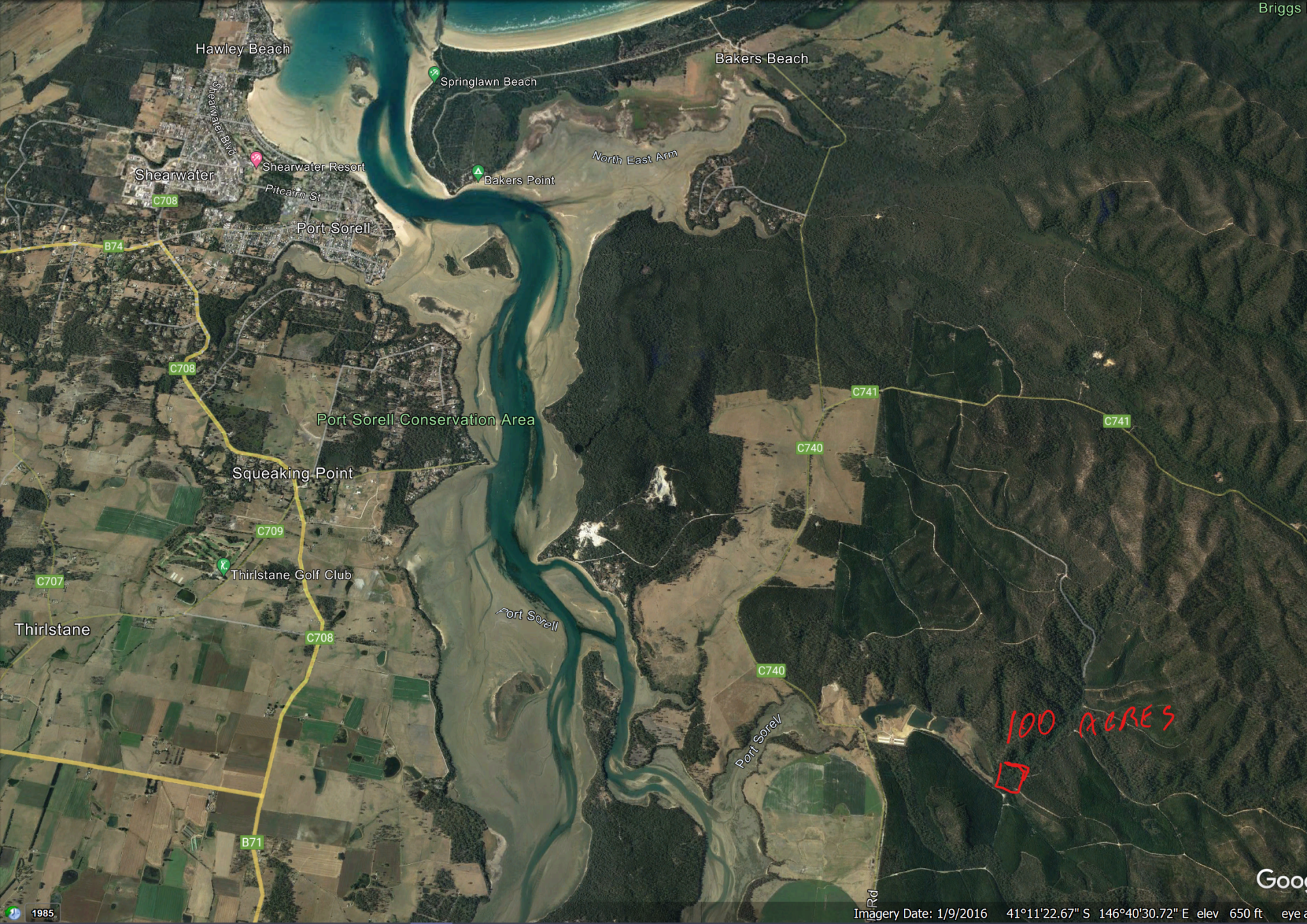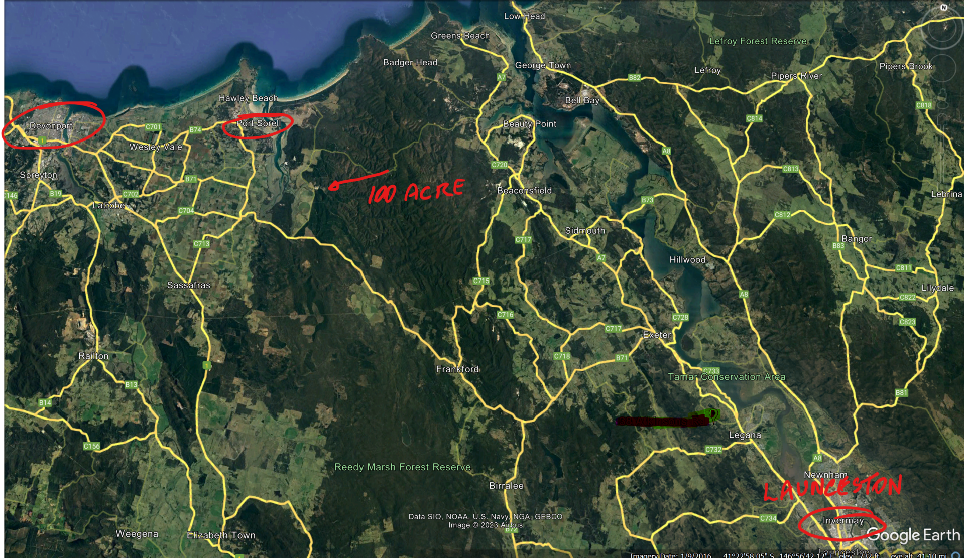 100 Acres Tasmanian Bush Block, Excellent access on public Gravel road, Property features a seasonal Creek which is flowing most of the year, Some permanent clear pools even in the driest months. Lots of native wildlife, Parrots etc, Variety of Large trees, and Ferns, Fungi and Mushrooms, Property has some flat areas to ridges. Forest cover is extensive. Many Native Cherry trees. Plenty of variety to explore, Ideally located on the warmer central north coast, Just 18 Kilometers from the very popular, and well serviced coastal holiday and tourist town of Port Sorell. And 15 minutes drive to Latrobe with Devonport just minutes beyond. Alternatively, Launceston is about one hour away to the east. Bakers Beach with its National Park is just 12 Kilometers away. A 20 foot shipping container is mounted on steel posts, and has a new corrugated roof which extends past the container, creating an undercover car park area. The property is adjoining the Dalgarth Forestry reserve, offering many hundreds of kilometers of excellent trails for 4x4 and mountain biking. There is only 2km of excellent smooth gravel public road to get to the property from the sealed road. Zoned "Agricultural" but because the land is unsuitable for Agriculture, there is no reason to prevent a building application for a permanent dwelling. Once a long time ago, someone lived on this land, in a small cabin, remains of a brick chimney can be seen. It would not take much to turn this into a ideal holidaying location, all that's required is a water tank and some clearing. Telstra Mobile Phone reception.