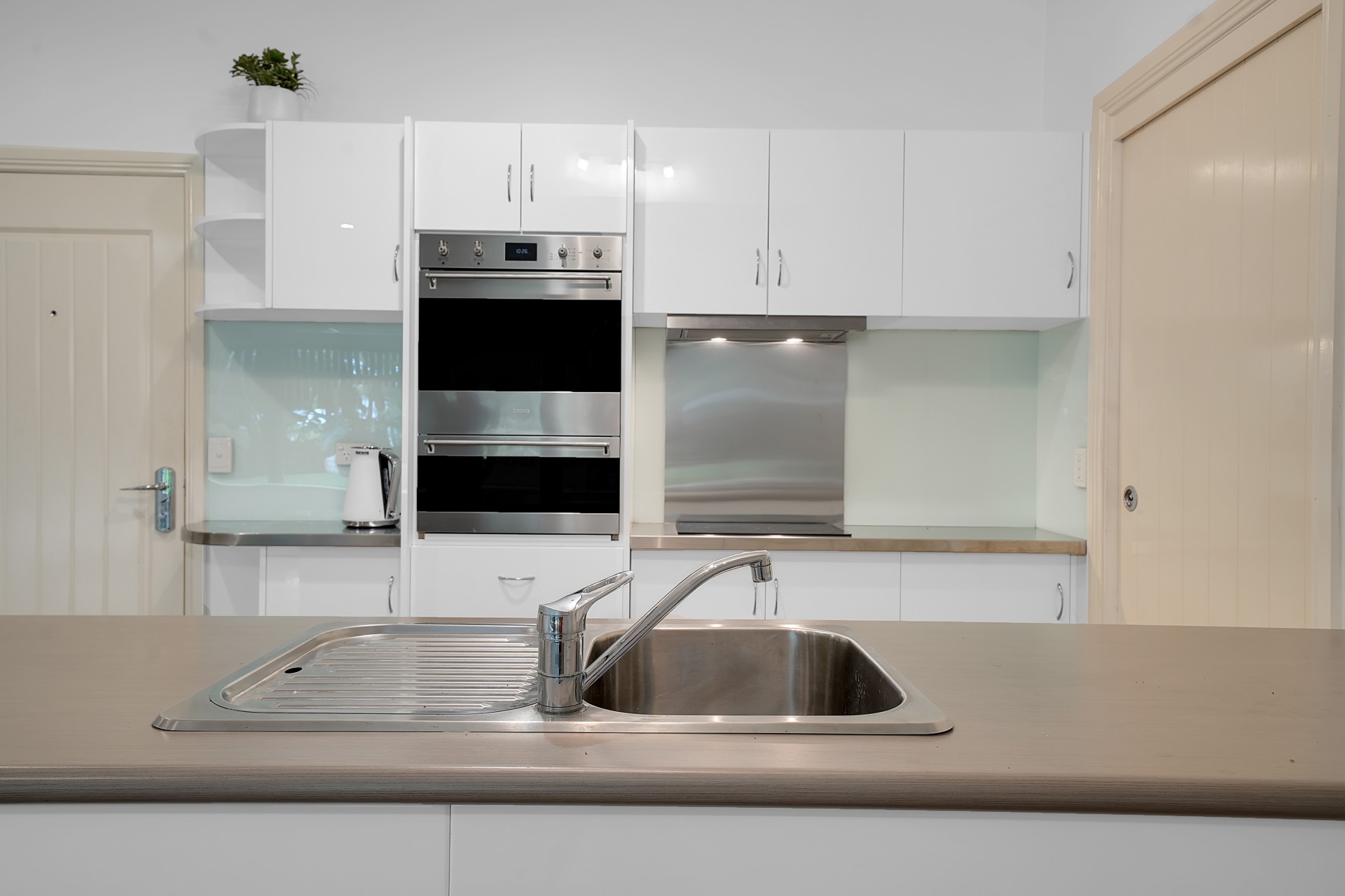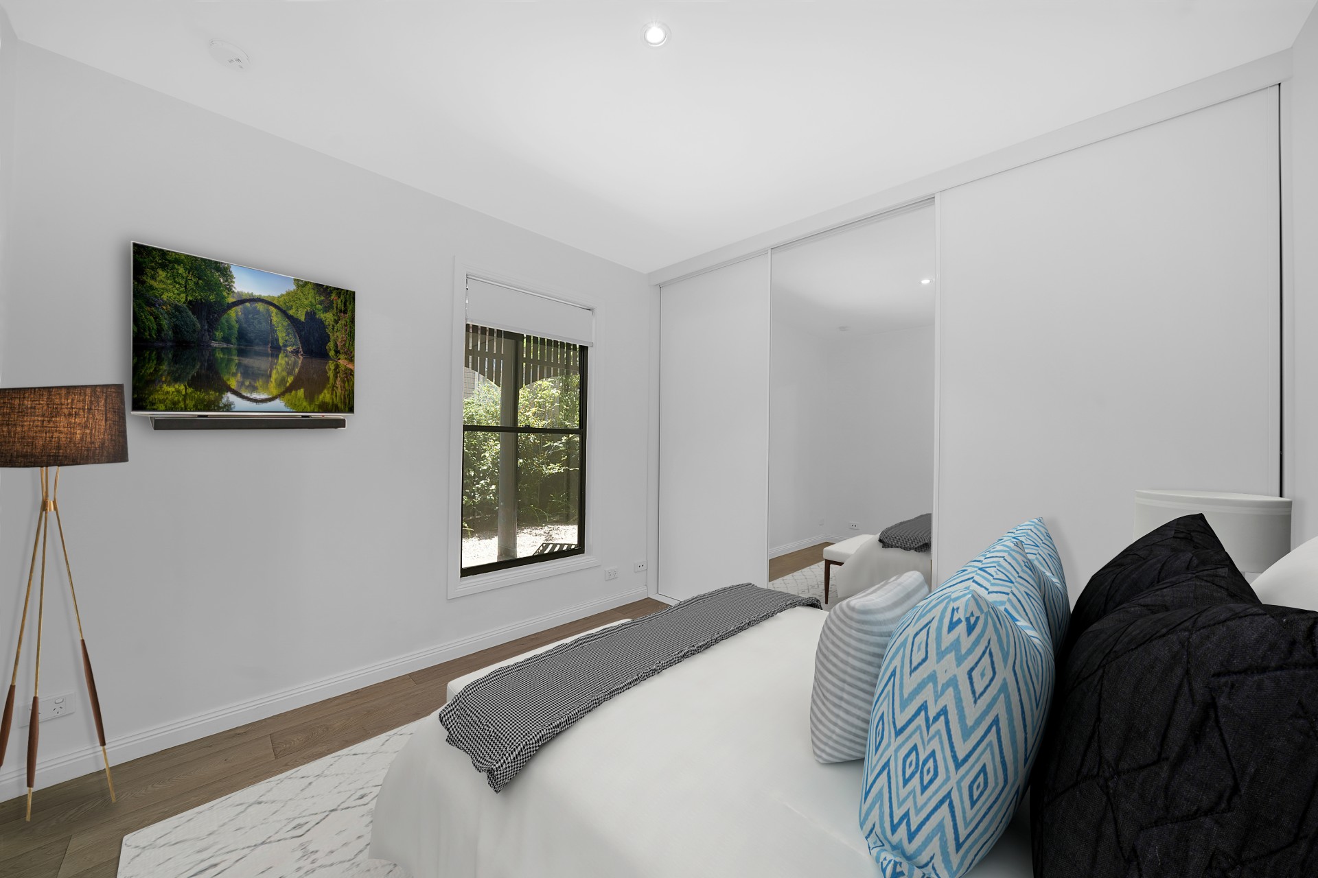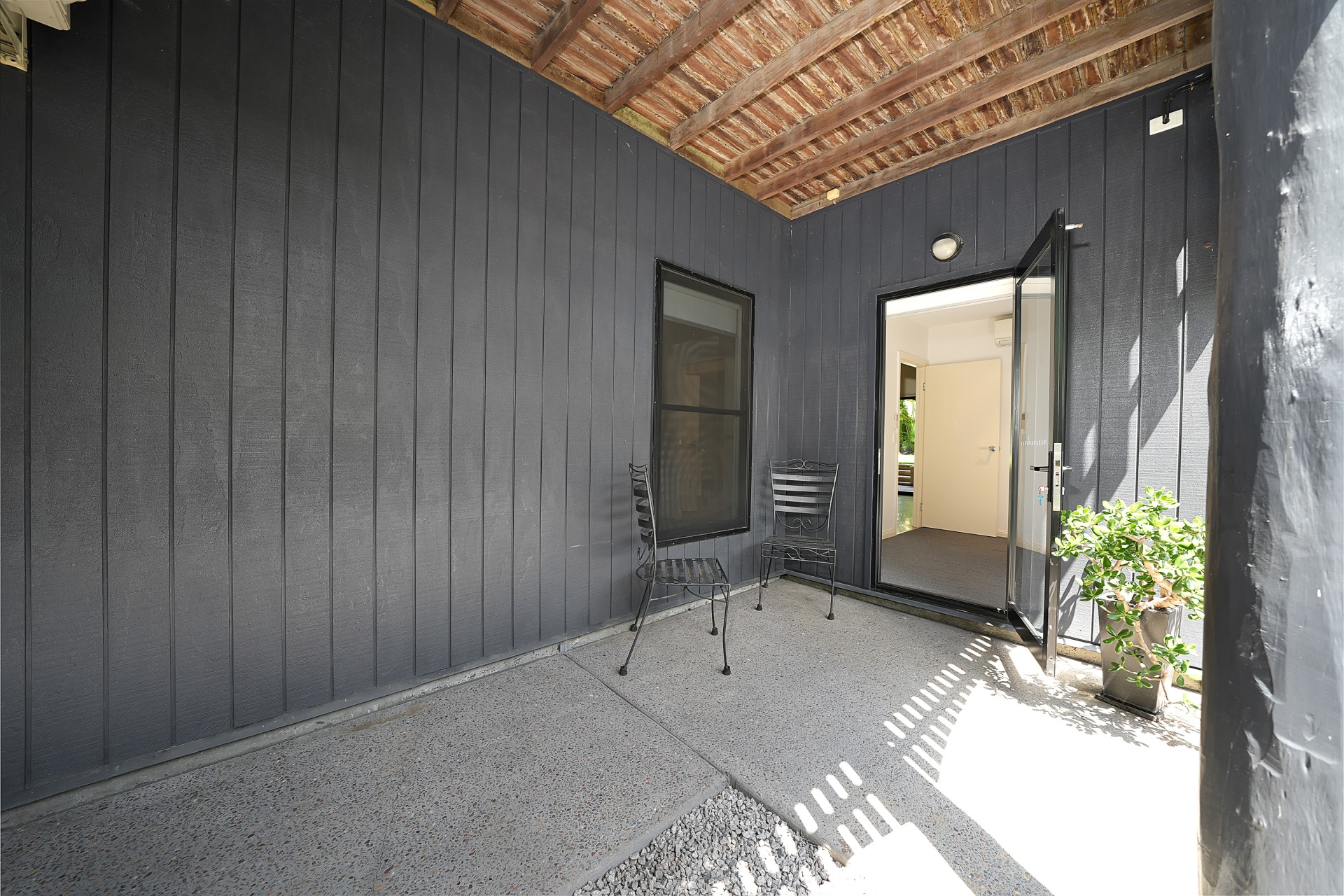 The lower level offers a full kitchen, ample living area with high ceilings, bedroom with built-in robe, airconditioned office and covered outdoor area, with direct garage access.