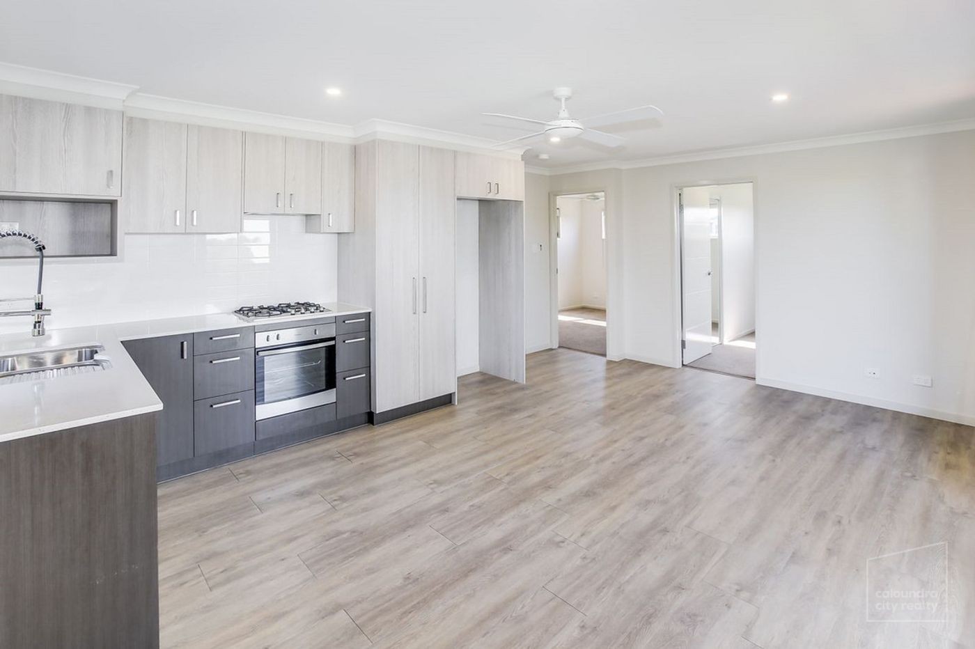 - Open living and kitchen with quality appliances, caesarstone bench tops and gas cooktop