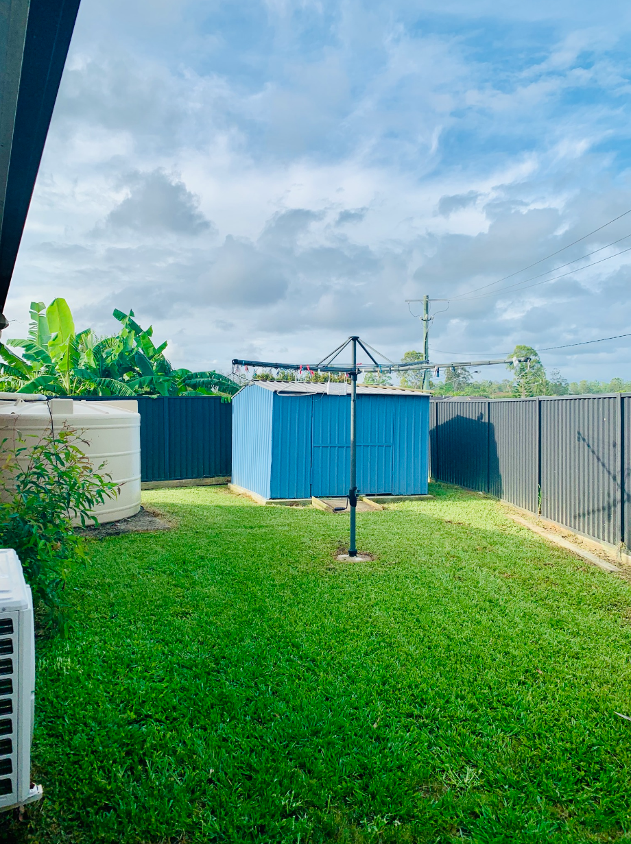 A pet enclosure has been built to create a safe haven for your small pets and is accessed using two separate gates. The backyard also features a new hills hoist clothesline, new colorbond fencing on two sides (plus gate with key), a garden shed and a grassed area perfect for children and pets to run around. The backyard is also home to a 5,000L rainwater tank that is connected to the laundry, internal toilets and a tap outside.