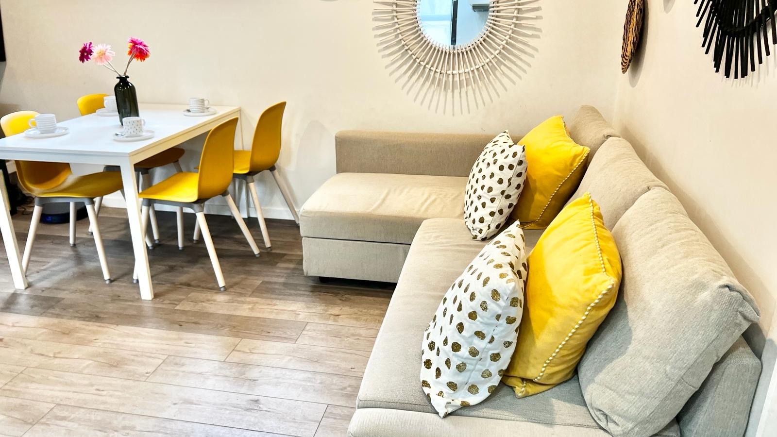 With an open kitchen integrated into the living and dining room. While you cook, your guests can sit around the American bar having a soft drink or a wine with some appetizers.