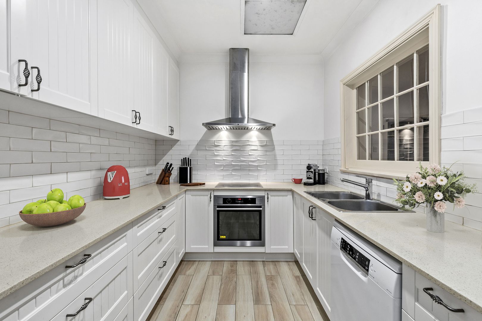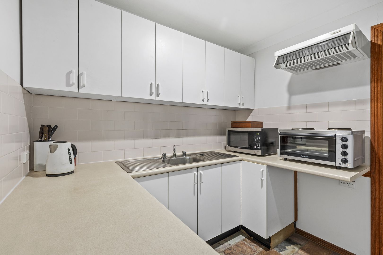 • Modern kitchen in as-new condition with stone benchtops and 36 cupboards/drawers.