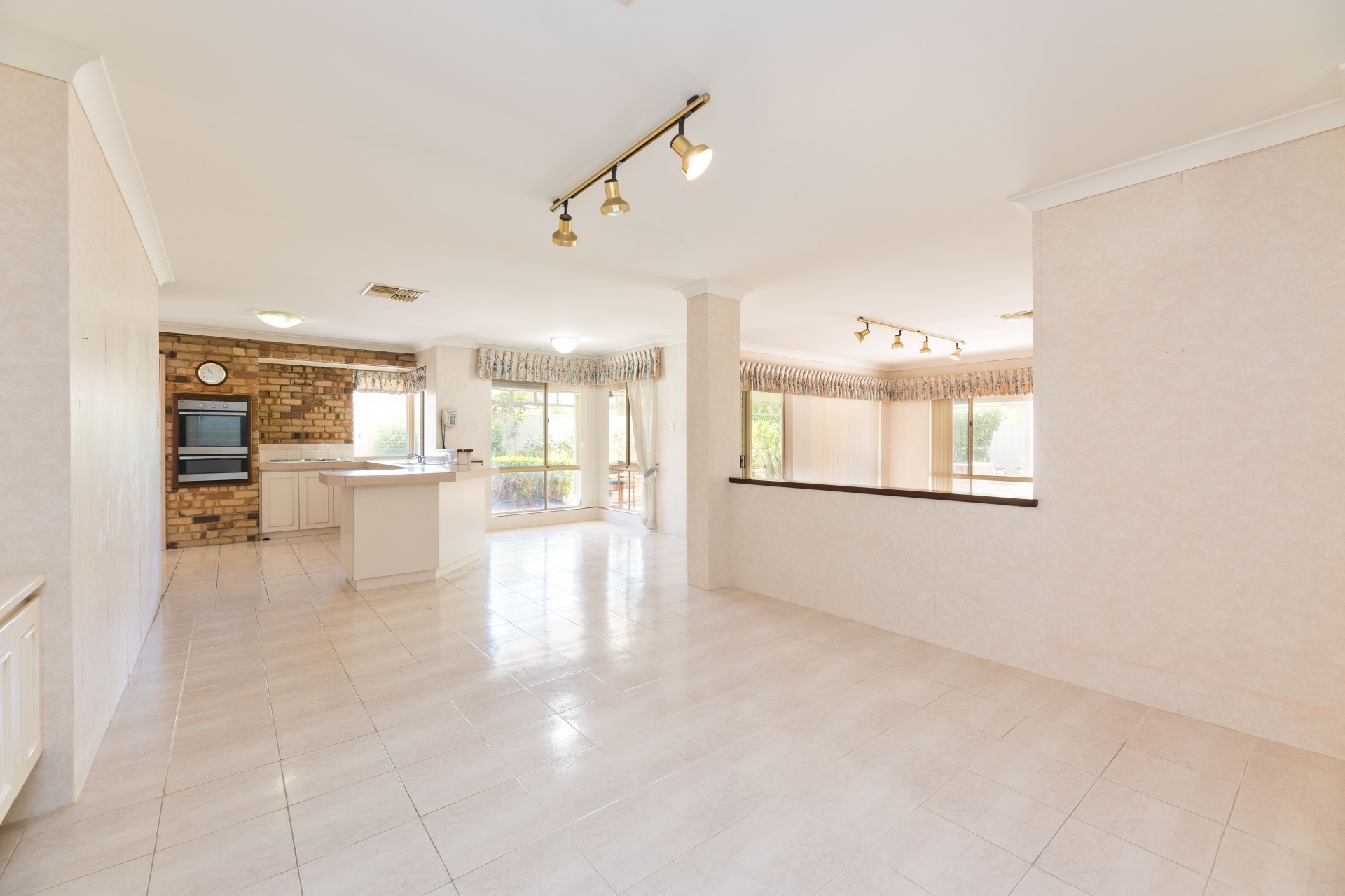 From the dining room you move into the open kitchen area and informal living space. The brightly lit kitchen with its corner window allows plenty of natural morning sunlight to brighten up breakfast time. There is a built in pantry, electric wall oven and separate hotplates along with a generous recess for a fridge/freezer. The cupboard space is sufficient to accommodate family requirements along with a nice sized bench. From here you have a clear view of the family, meals and games room and out to the garden.