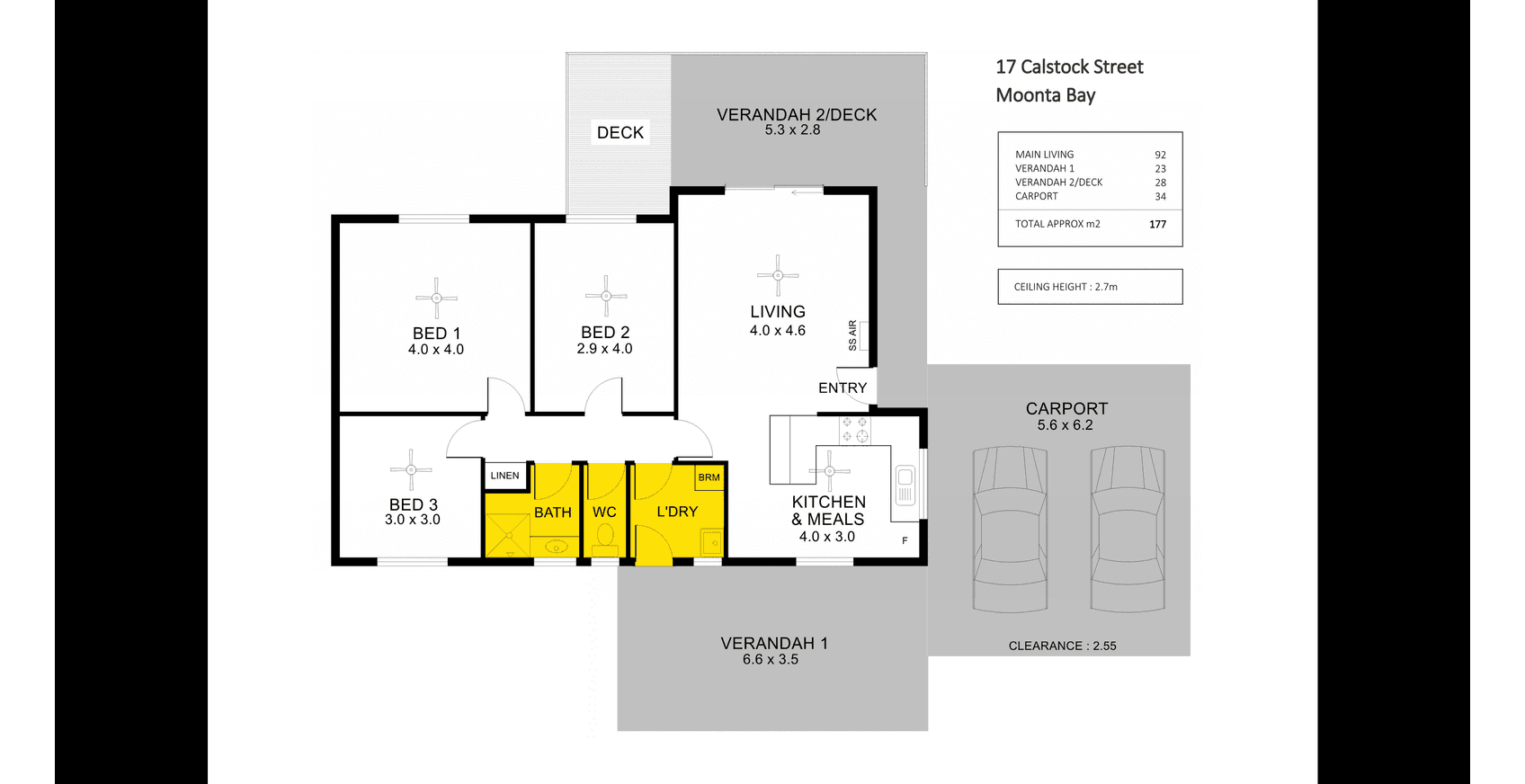 Boasting 3 well-appointed bedrooms, each featuring ceiling fans for comfort. The spacious front lounge and dining area, complemented by an open kitchen, embrace views from both the east and west sides of the property. The reverse cycle split system air conditioning ensures year-round comfort, keeping you cool during summer and cozy in winter.